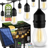 Solární zahradní girlanda 30x LED dekorativní žárovky 20m + PILOT IP65 2700K Warm SOLLIS LUMILED