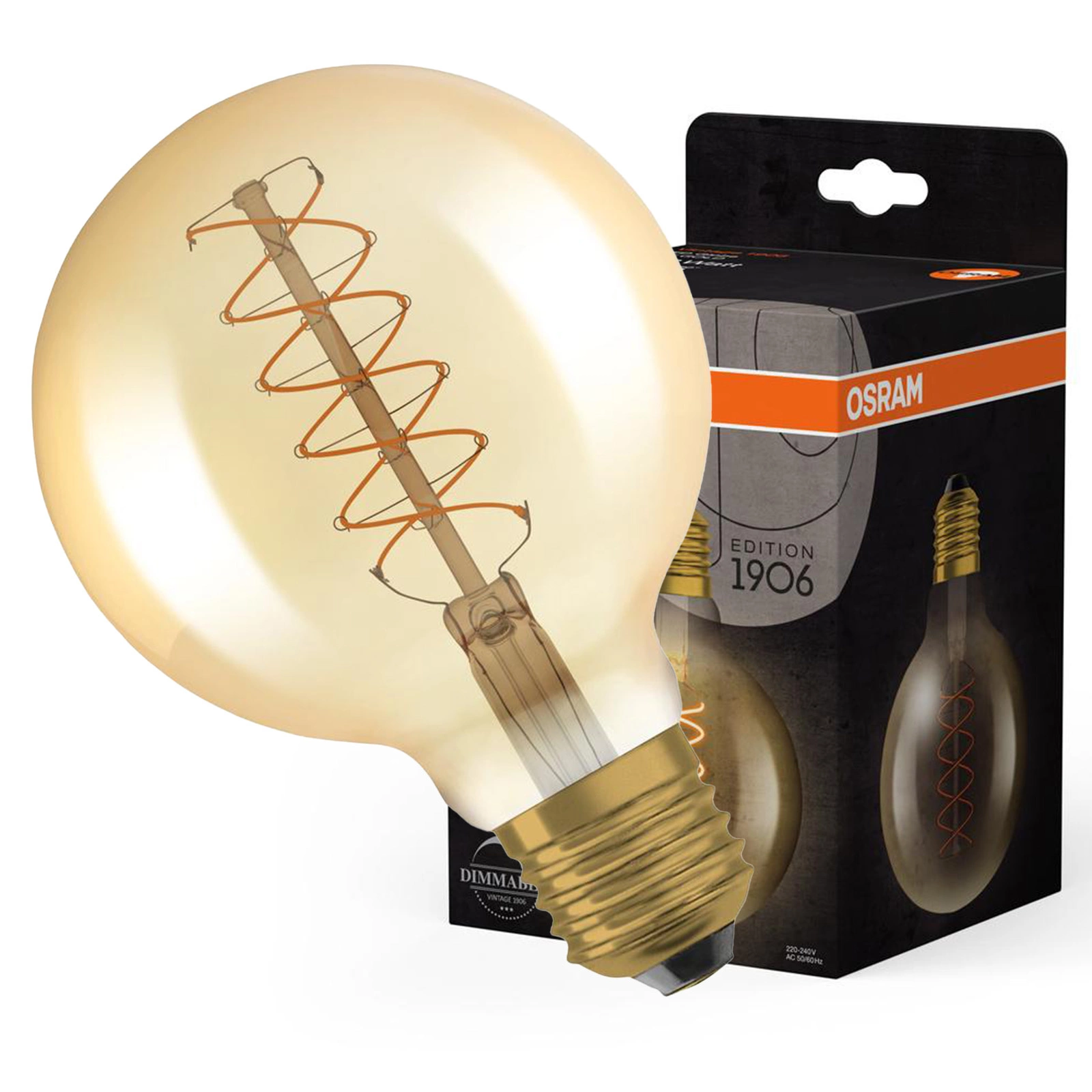 Dekorativní LED žárovka ve tvaru Globe je nejnovějším produktem renomované a uznávané společnosti OSRAM v oboru osvětlení. LED žárovka stylu VINTAGE 1906 s paticí E27 je vysoce kvalitní LED světelný zdroj uzavřený ve skleněné žárovce elegantního tvaru. Prezentovaná žárovka se skvěle hodí jako dekorativní osvětlení v našich domech nebo bytech. Jeho klasický vzhled dodá vašemu hnízdu útulný charakter a vaše oči si odpočinou v příjemném světle. Žárovka byla vyrobena za použití nejnovějších technologií energeticky úsporných LED diod , které se vyznačují vysokou účinností světelných parametrů a mimořádně dlouhou životností.