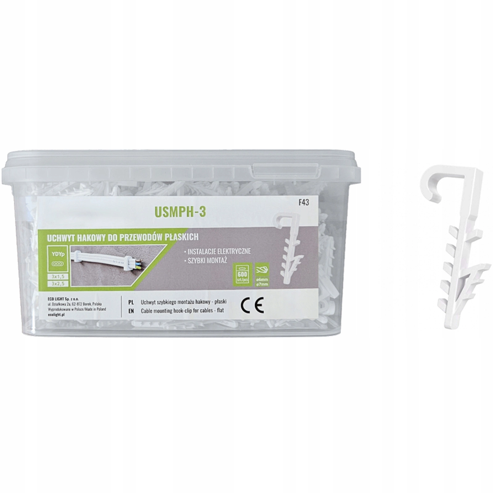 Použití: Držák háku pro ploché kabely YDYp 3x1,5 a 3x2,5, průměr vrtáku Ø 6-7.