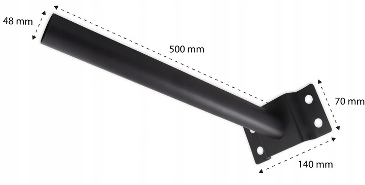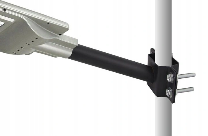 RUKOJEŤ pro pouliční lampu SOLAR v barvě černá, vyrobeno z vysoce kvalitních materiálů ocel s úhlem sklonu 35-40° a maximální nosnost 20 kg. Průměr trubky je 48 mm. Sada obsahuje montážní kotvy do betonu.