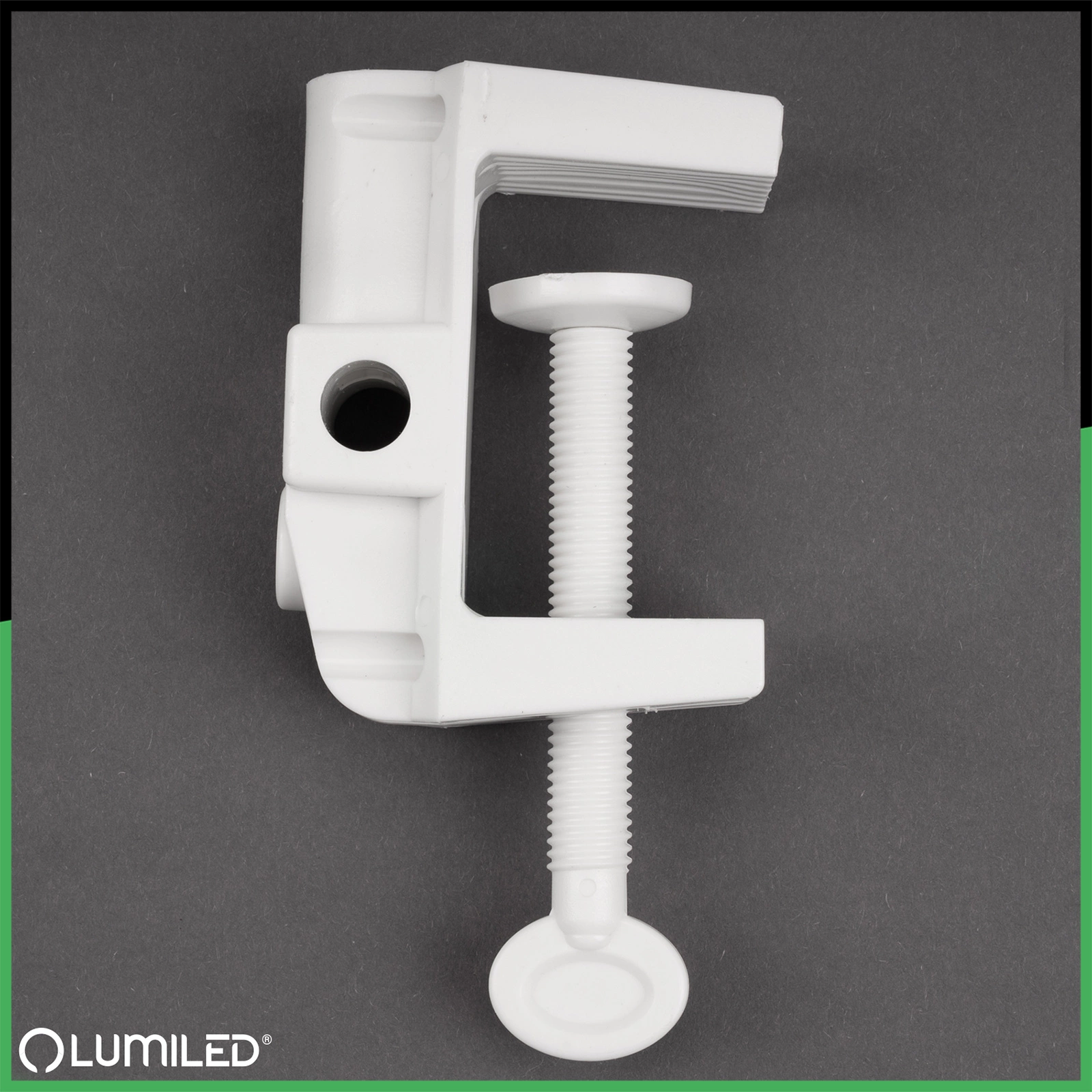 Držák stolní lampy Lumiled je praktické řešení, které umožňuje bezpečné upevnění lampy na desku stolu, stůl nebo polici. Díky robustní svorce budete moci lampu bezpečně držet, aniž by hrozilo její posunutí nebo pád. Díky univerzálnímu designu je držák vhodný pro většinu modelů stolních lamp a elegantní bílá barva dokonale ladí s každým interiérem. Jedná se o příslušenství, které zvyšuje funkčnost lampy a šetří místo na desce stolu.