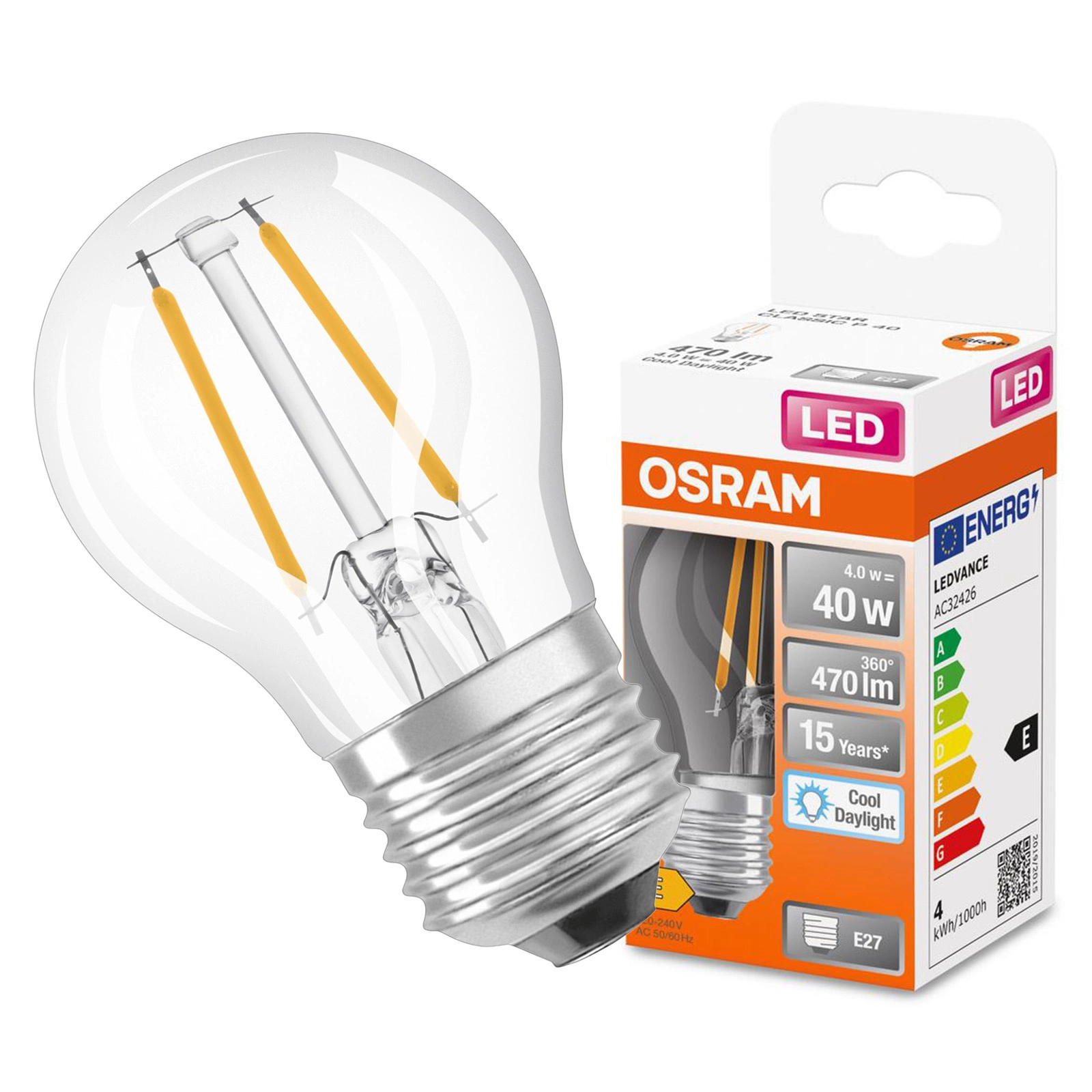 E27 P45 LED žárovka 4W = 40W 470lm 6500K Studená 300° vlákno OSRAM STAR