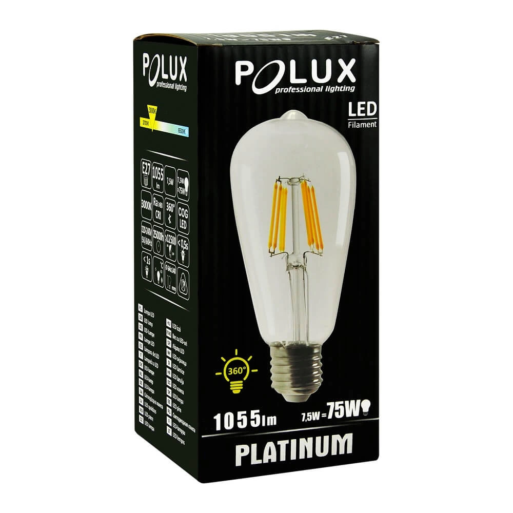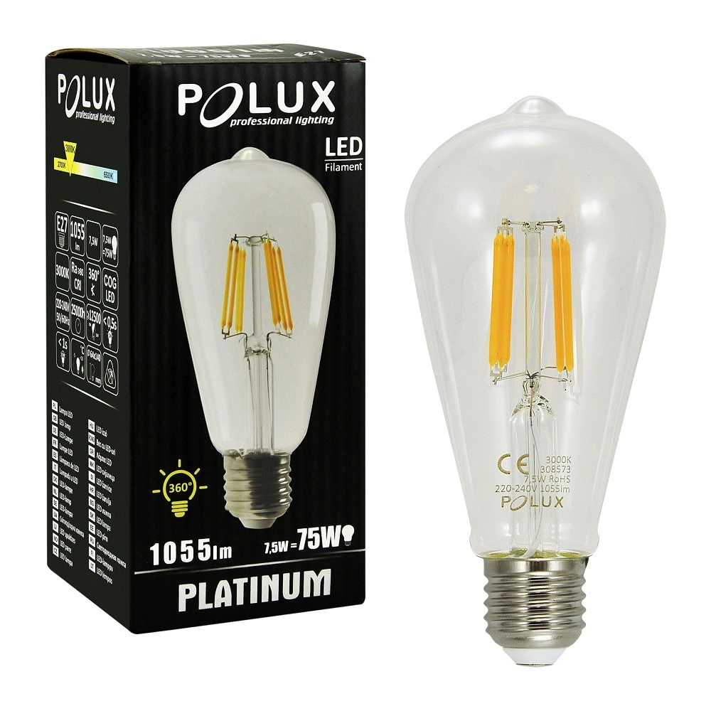 Žárovka ST64 FILAMENT od renomované a v osvětlovacím průmyslu uznávané firmy Goldlux s paticí E27 a výkonem 7,5W (odpovídá klasické 75W žárovce ) je vysoce kvalitní LED světelný zdroj. Svítidlo bylo vyrobeno pomocí moderních řešení využívajících inovativní LED technologii , která se vyznačují vysokou účinností světelných parametrů, věrnou reprodukcí barev osvětlovaných předmětů a mimořádně dlouhou životností.