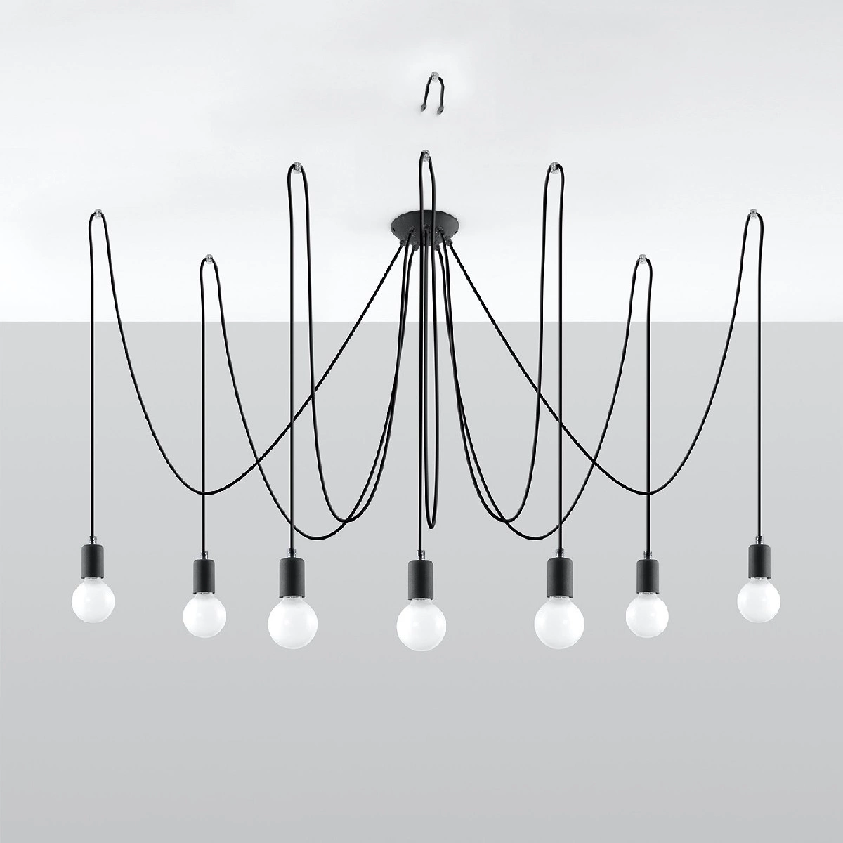 Elegantní závěsné stropní svítidlo od společnosti Sollux je kombinací moderního designu a industriálního stylu. Lampa je vyrobena z nejkvalitnějších materiálů a vyznačuje se nepravidelným tvarem, který jí dodává jedinečný charakter. Její černé barevné provedení dokonale zapadne do každého interiéru a podtrhne jeho individualitu. K instalaci lampy je zapotřebí sedm žárovek E27, které poskytují správné množství světla pro velké i menší místnosti.
