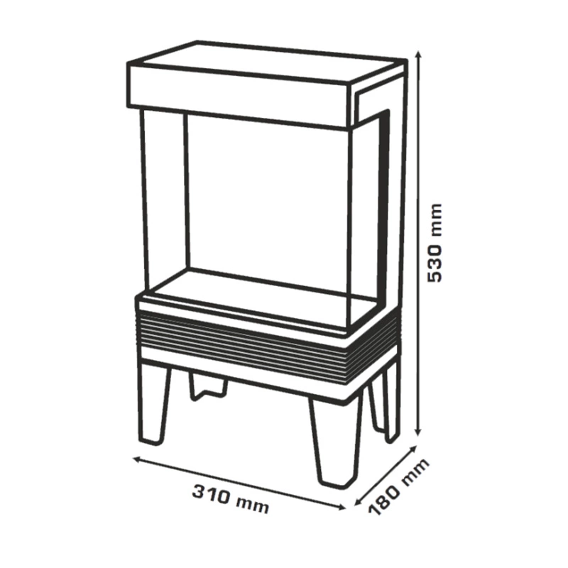 Panoramatický elektrický krb se 2 úrovněmi ohřevu 600W / 1200W.