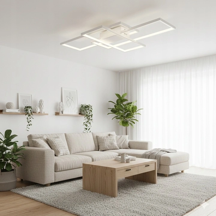 Geometrické stropní svítidlo PLAFON LED lustr 130W 3000K-6500K bílá + dálkový ovladač