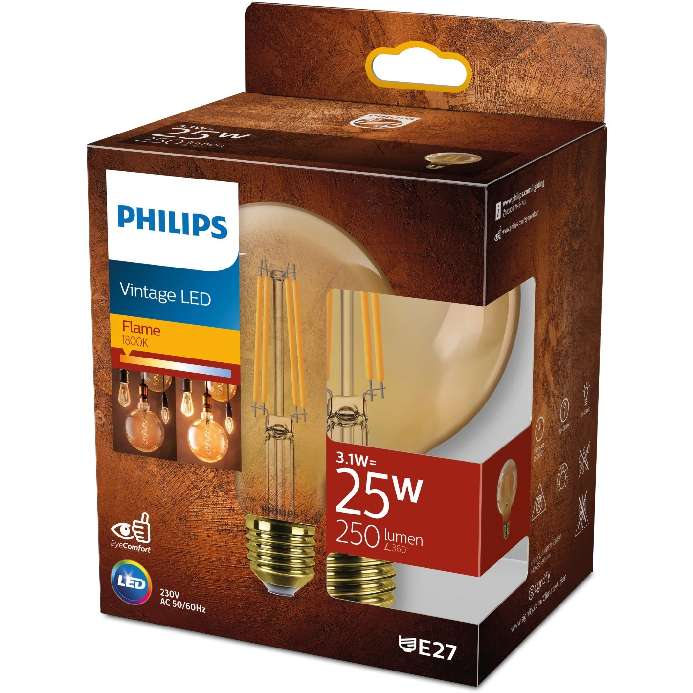 Nová řada Deco poskytuje dokonalou kombinaci teplého bílého světla s diskrétním a minimalistickým osvětlením. Klasický vzhled tradičního osvětlení s výhodami LED. Díky svému modernímu a elegantnímu designu je dokonalou náhradou tradičních matných žárovek. Žárovka z průhledného jantarového skla dodá osvětlení vašeho domova styl minulých dob.