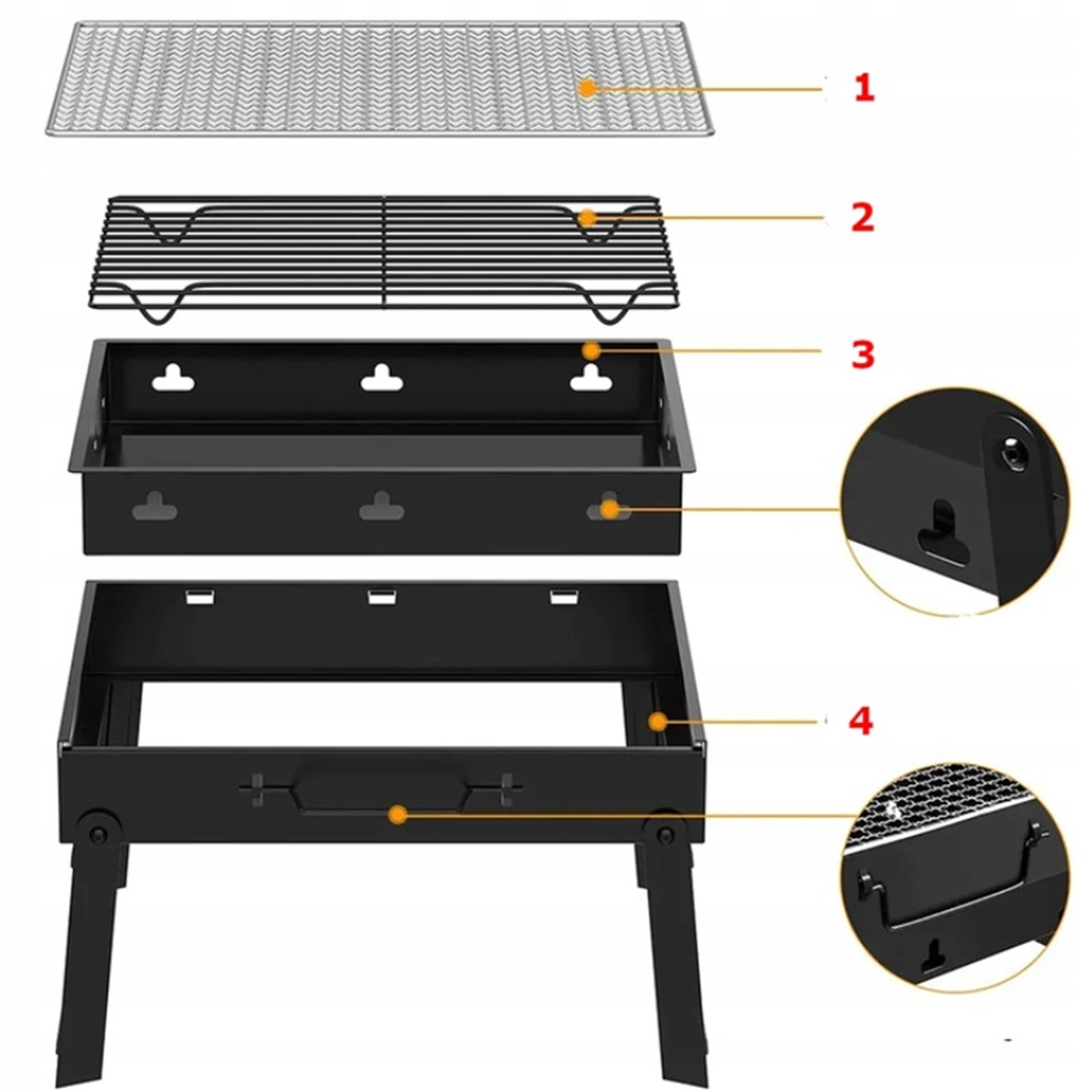 - ✔ Skládací přenosný gril – ve tvaru praktického kufříku