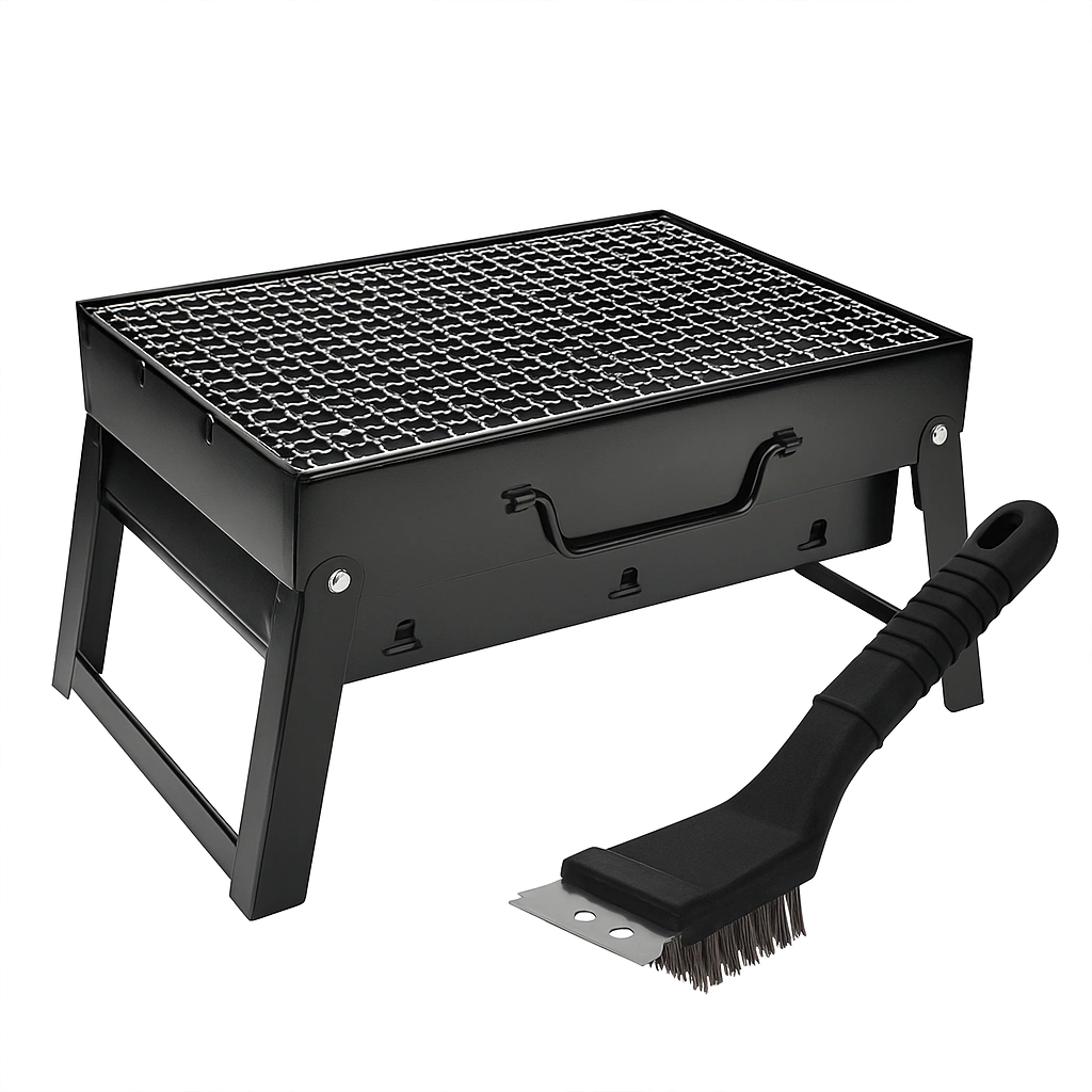 Praktická grilovací sada: Skládací gril + kartáč 2v1