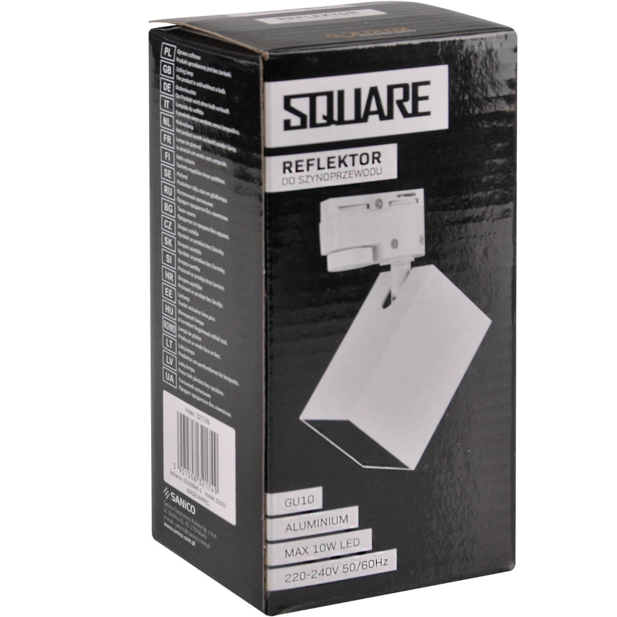 GU10 Bílý+černý reflektor pro montáž na kolejnice Čtvercový POLUX
