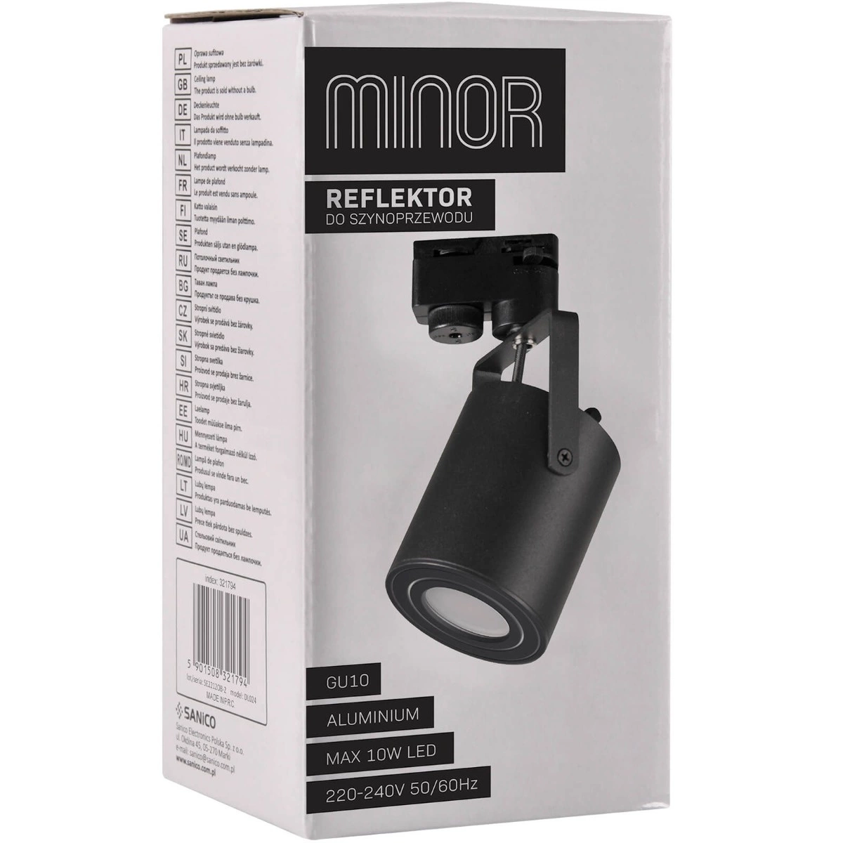 Černý reflektor na kolejnici s možností montáže žárovky se závitem GU10 s maximálním výkonem 10W, určené pro pro montáž na kolejnici. Svítidlo je ideální do domácnosti, kanceláře, výlohy nebo na chodbu. Reflektor byl navržen v moderním minimalistickém designu, bude dobře fungovat v různých interiérech a dodá jim jedinečný charakter. Díky svému designu v hliníku reflektor je odolný proti korozi a má větší odolnost proti mechanickému poškození. Lampa má nastavitelný úhel dopadu světla, což usnadňuje umístění světla tak, aby vám vyhovovalo. Takové řešení je velmi vhodné pro zvýraznění vybraných prvků interiéru, jejich zdůraznění nebo jednoduše pro intenzivnější osvětlení, např. pracovních stolů nebo stolů.
