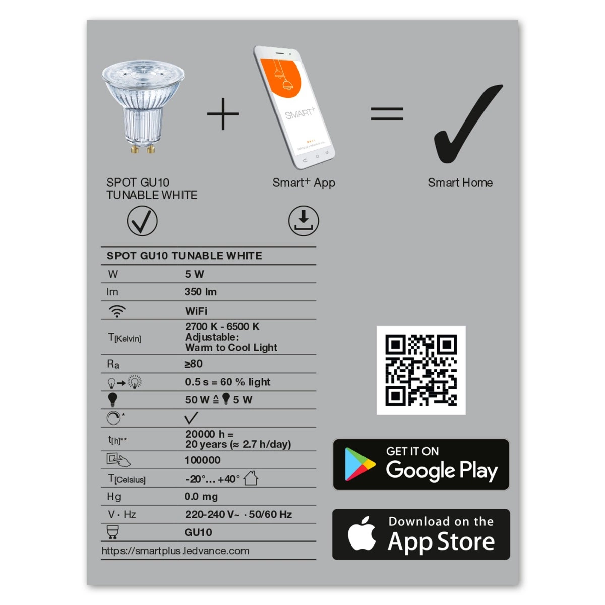 Objevte moderní LED osvětlení s 4,9W reflektorovou žárovkou GU10, jejíž svítivost odpovídá 350 lm. Díky funkci SMART+ WiFi můžete snadno nastavit barvu světla pomocí technologie CCT, která umožňuje variabilní teplotu barev. Žárovka poskytuje široký úhel rozložení světla 45°, což umožňuje rovnoměrné osvětlení místnosti.