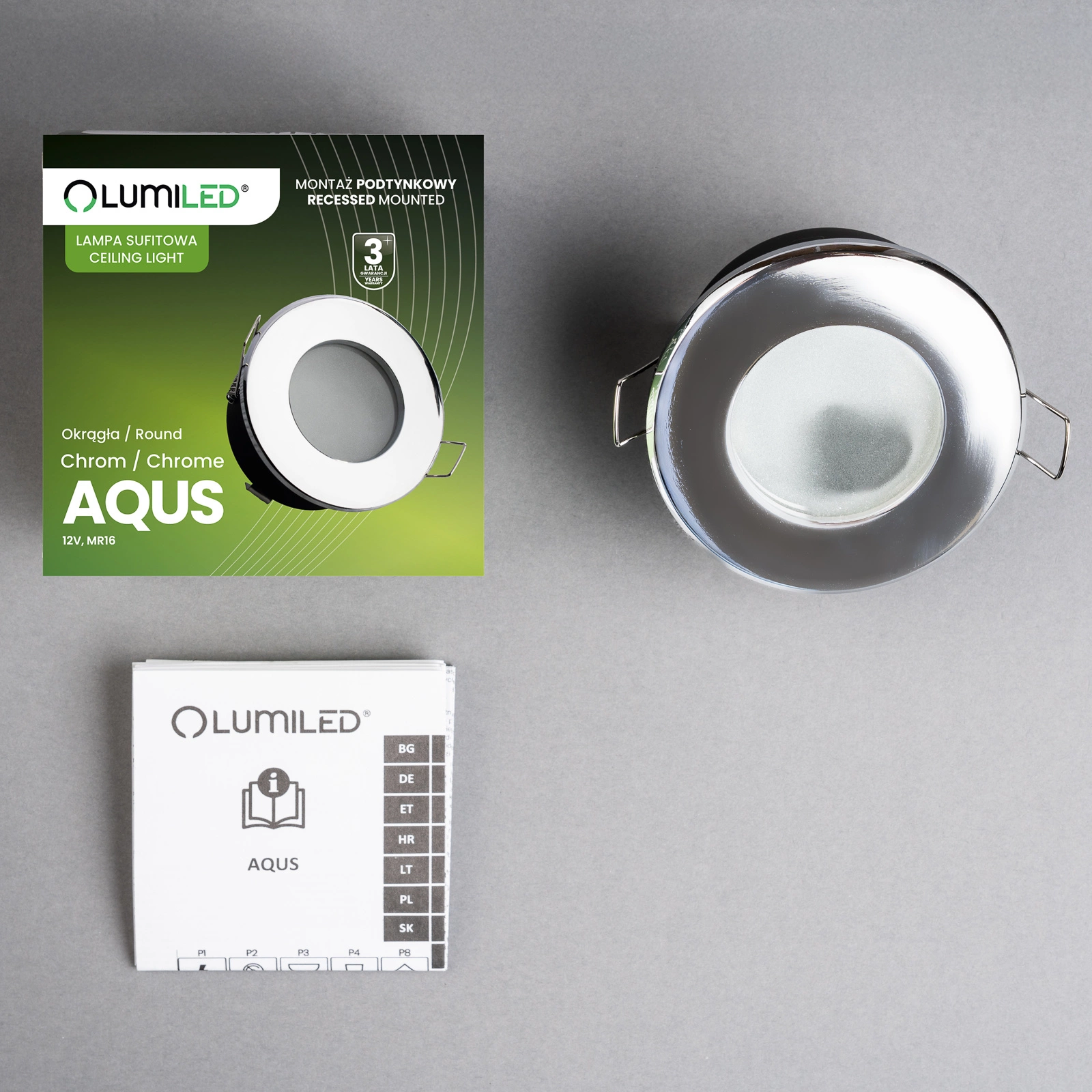 Kulaté svítidloAQUS od renomované značky Lumiled je podhledové svítidlo vyrobené z vysoce kvalitní hliníkové slitiny.Stropní svítidlo AQUS je navrženo pro práci se světelnými zdroji LED s paticí GU10, jejichž výkon nepřesahuje 12 W. Zvláštností tohoto svítidla je použití matného skla, které plní nejen estetickou, ale i praktickou funkci. Matné sklo jemně rozptyluje světlo, čímž eliminuje oslnění a vytváří příjemnou, jemnou záři. Díky tomu je osvětlení příjemnější pro oči a interiér působí elegantním a moderním dojmem. Díky použití robustních materiálů zajišťuje toto svítidlo dlouhou životnost a odolnost proti stříkající vodě a vlhkosti, takže se ideálně hodí do místností s vysokou vlhkostí, jako jsou koupelny a kuchyně.