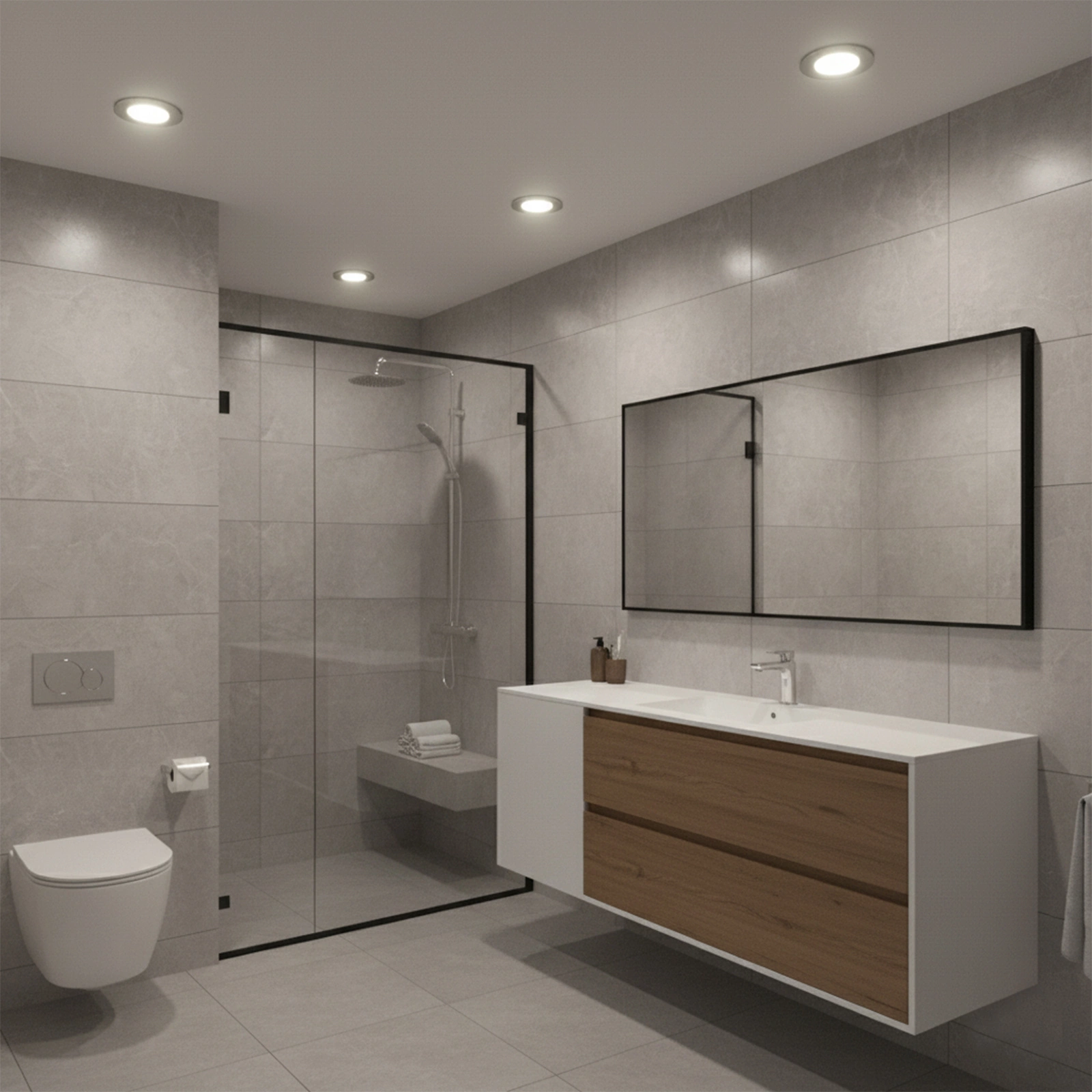 Svítidlo AQUS má krytí IP44, což znamená, že je účinně chráněno proti vniknutí malých pevných předmětů (větších než 1 mm) a stříkající vody z jakéhokoli směru. Díky tomu je ideální pro použití v místech vystavených vlhkosti a stříkající vodě, jako jsou koupelny, kuchyně, prádelny a vnější střešní podhledy. Jeho konstrukce je navržena s ohledem na odolnost a spolehlivost v náročnějších podmínkách, takže je vynikající volbou tam, kde by běžná svítidla mohla selhat.