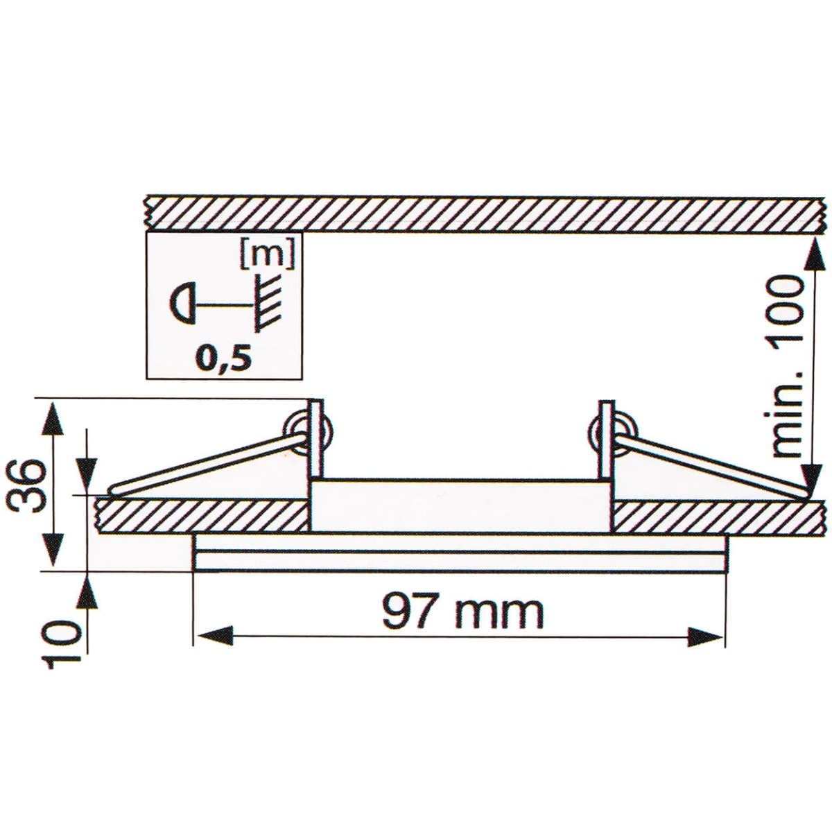 - Rozměry montážního otvoru: 75 mm .