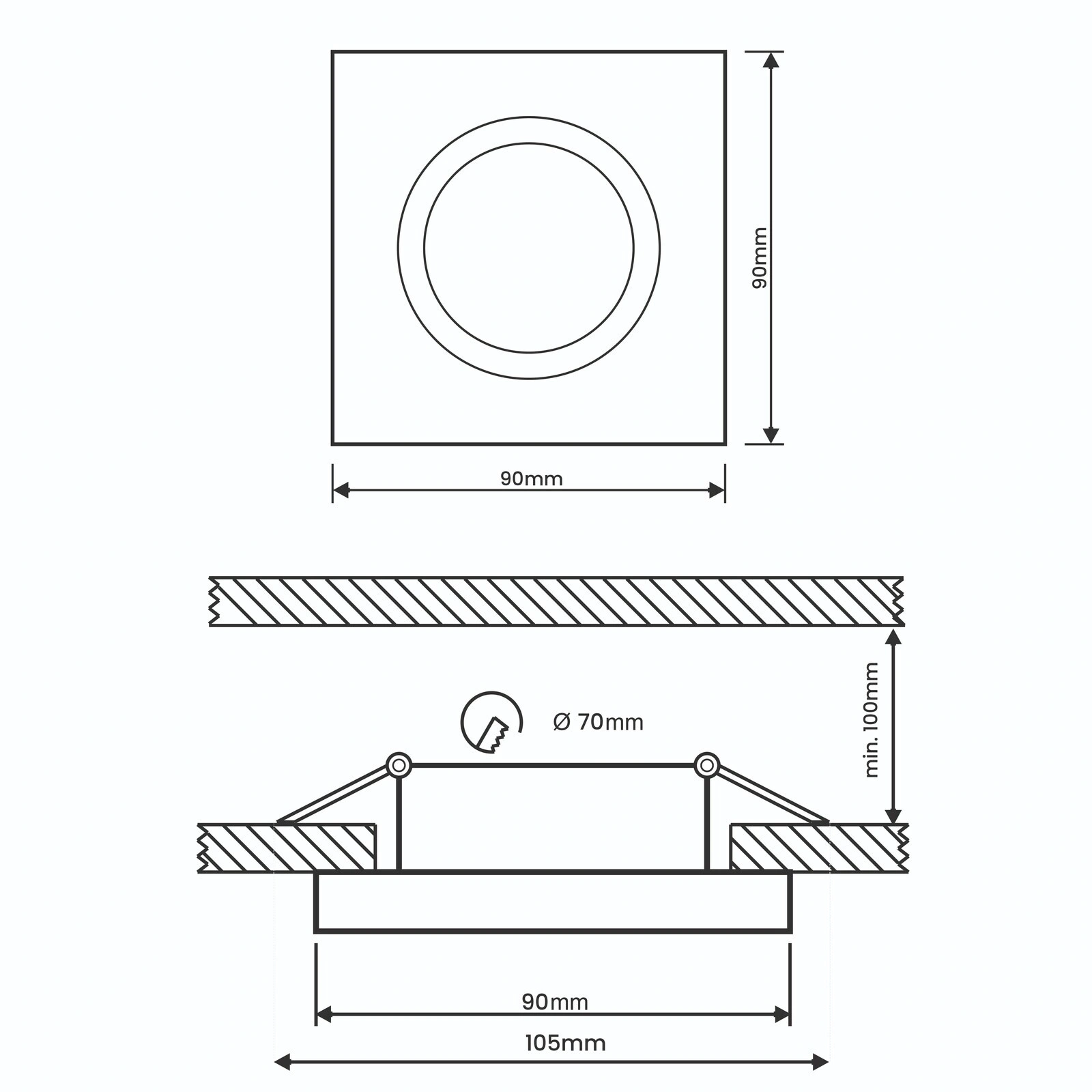- Rozměry montážního otvoru - 75 mm