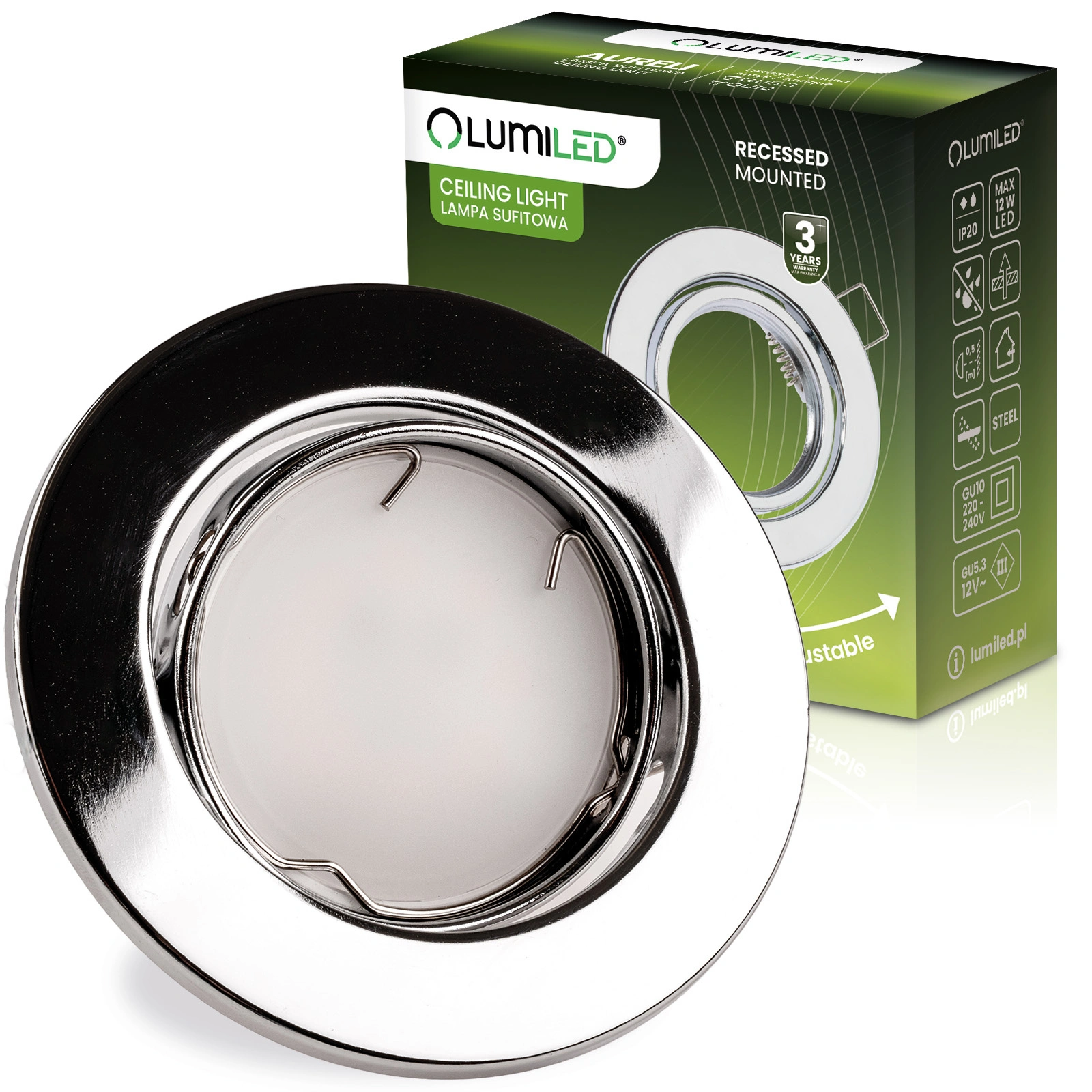 Svítidlo HALOGEN, vestavné, pohyblivé, kulaté, AURELI, chrom, plech, MR16, GU10