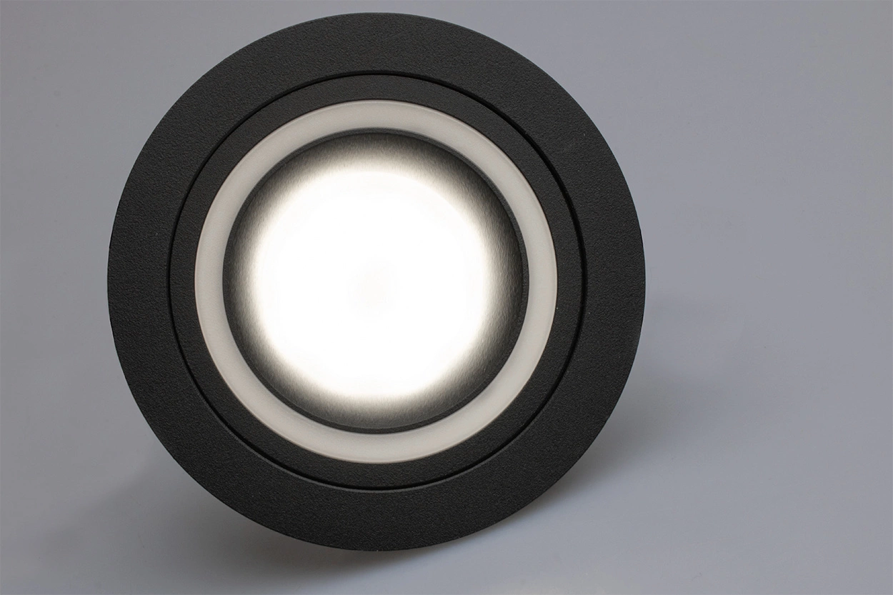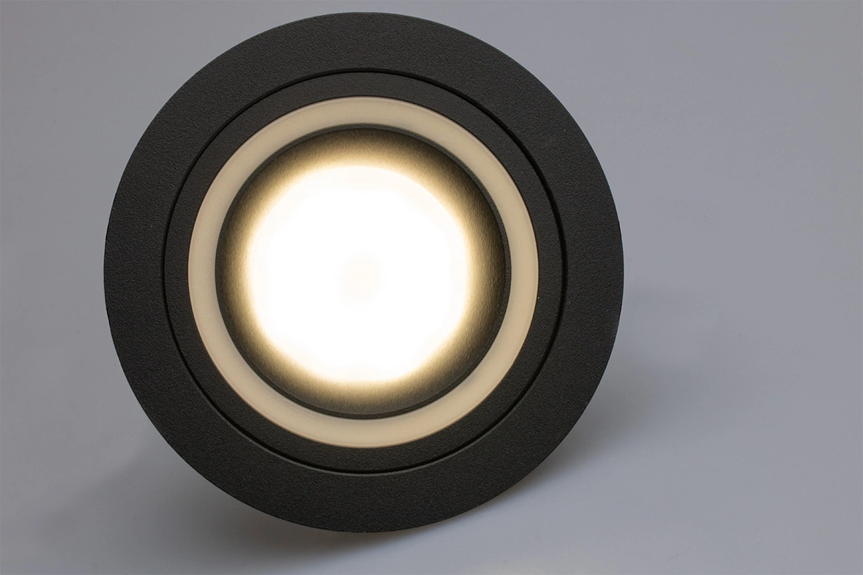 Kulaté halogenové svítidlo v černé barvě je vyrobeno z vysoce kvalitního hliníku. Svítidlo je uzpůsobeno pro zapuštěnou montáž, v kombinaci s dobrou LED žárovkou jej lze použít pro dekorativní osvětlení i pro celkové osvětlení větších otevřených místností, kde se použití jednoho světelného zdroje ukazuje jako nedostatečné a díky svému modernímu vzhledu najde uplatnění v každé moderně zařízené místnosti, bytech, domech nebo elegantních kancelářích.