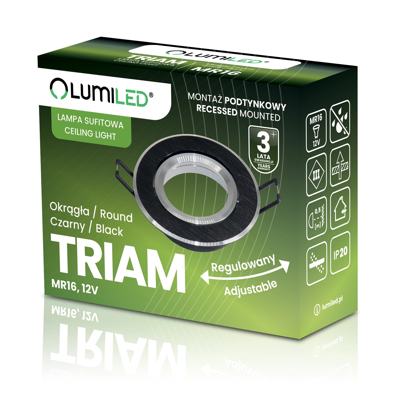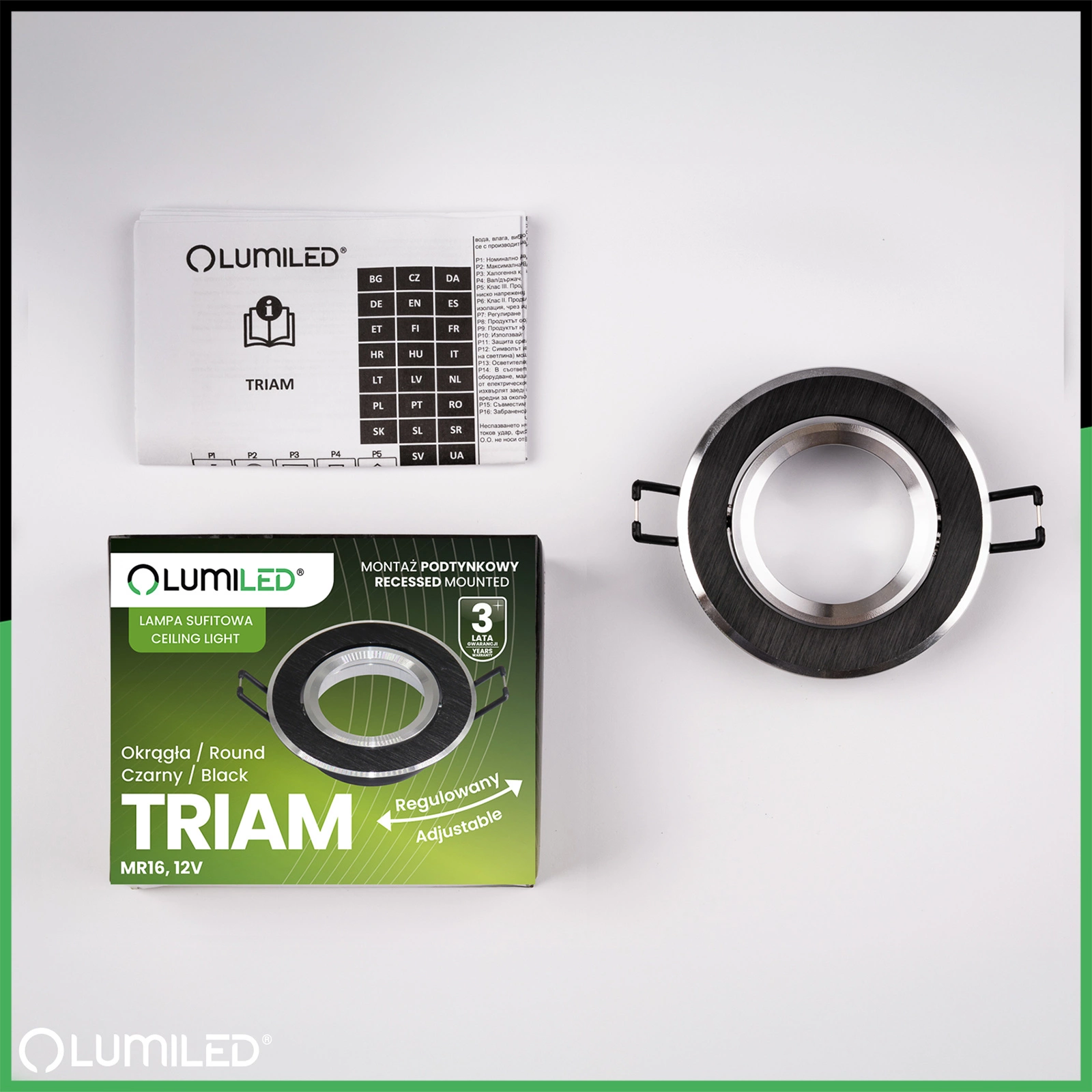 Stropní svítidlo Lumiled TRIAM je dokonalým řešením pro interiéry, kde je důležitá estetika a funkčnost. Jeho kulatý černý prstenec decentně zapadá do aranžmá a díky možnosti nastavení směru dopadu světla získáte plnou kontrolu nad osvětlením. Výrobek je vyroben z odolného hliníku, což zaručuje robustnost a dlouholeté používání. Díky oblíbené patici MR16 si můžete snadno vybrat světelný zdroj přizpůsobený vašim preferencím - jak z hlediska barvy, tak výkonu. Jedná se o svítidlo, které bude fungovat jako decentní akcentní světlo i jako hlavní osvětlení prostoru.