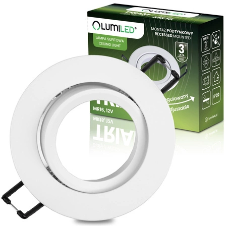 Stropní svítidlo Lumiled TRIAM je dokonalým řešením pro interiéry, kde je důležitá estetika a funkčnost. Jeho kulatý bílý prstenec decentně zapadá do aranžmá a díky možnosti nastavení směru dopadu světla získáte plnou kontrolu nad osvětlením. Výrobek je vyroben z odolného hliníku, což zaručuje robustnost a dlouholeté používání. Díky oblíbené patici MR16 si můžete snadno vybrat světelný zdroj přizpůsobený vašim preferencím - jak z hlediska barvy, tak výkonu. Jedná se o svítidlo, které bude fungovat jako decentní akcentní světlo i jako hlavní osvětlení prostoru.
