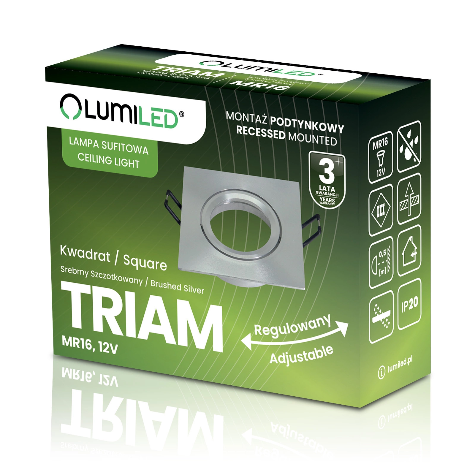 Čtvercové stropní svítidlo TRIAM od společnosti Lumiled je ideální volbou pro ty, kteří oceňují moderní design a praktická řešení. Jeho čtvercový tvar dodává interiéru výrazný geometrický charakter a nastavitelný prstenec umožňuje přesně nastavit směr světla. Získátetak plnou kontrolu nad osvětlením a můžete zdůraznit určité designové prvky. Robustní hliníková konstrukce zajišťuje odolnost a estetiku na dlouhá léta a oblíbená patice MR16 umožňuje zvolit žárovku v oblíbené barvě a příkonu. Jedná se o svítidlo, které bude fungovat jako stylový světelný akcent i jako funkční hlavní osvětlení v místnosti.