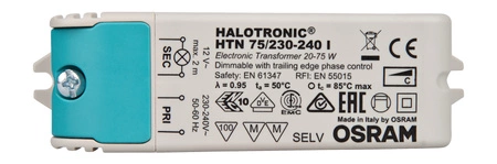 Napájecí zdroj je určen především pro závěsná a zapuštěná stropní svítidla, osvětlovací systémy a bytová (nábytková) svítidla. HALOTRONIC HTN je určen pro použití v místnostech s nízkou vestavěnou kapacitou. Navzdory velmi malým rozměrům má vynikající tepelné vlastnosti a i při zvýšených teplotách poskytuje bílé a jasné halogenové světlo.