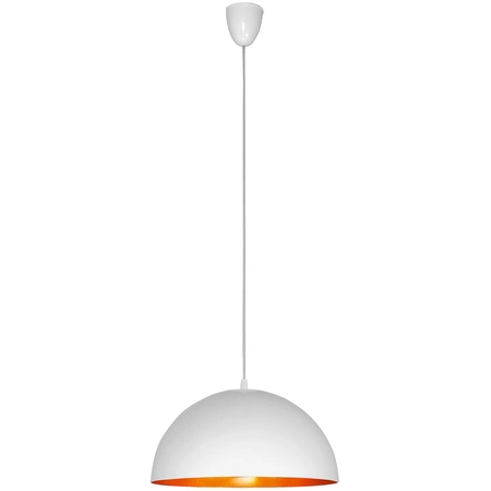 Závěsné svítidlo HEMISPHERE 4893 je minimalistický návrh od Nowodvorski , který je kombinací odolného a moderního osvětlení. Módní lampa má bílé stínidlo se zlatým vnitřkem. Přesah v tomto stylu bude krásně ladit se světlým, moderním nábytkem a dalšími doplňky v decentním stylu. Námi představované svítidlo zavěšené na centrálním místě bytu bude krásnou ozdobou domu a praktickým zdrojem světla, který interiéru dodá výrazný charakter. Výrobek se skvěle hodí do jídelny, obývacího pokoje nebo obývacího pokoje a díky své konstrukci se snadno udržuje v čistotě. Maximální výška svítidla je až 120 cm . stínidlo má průměr 34 cm .