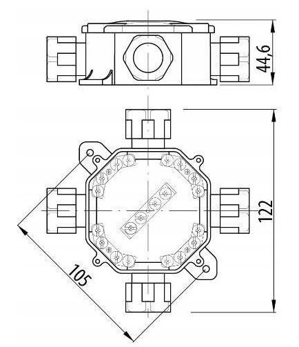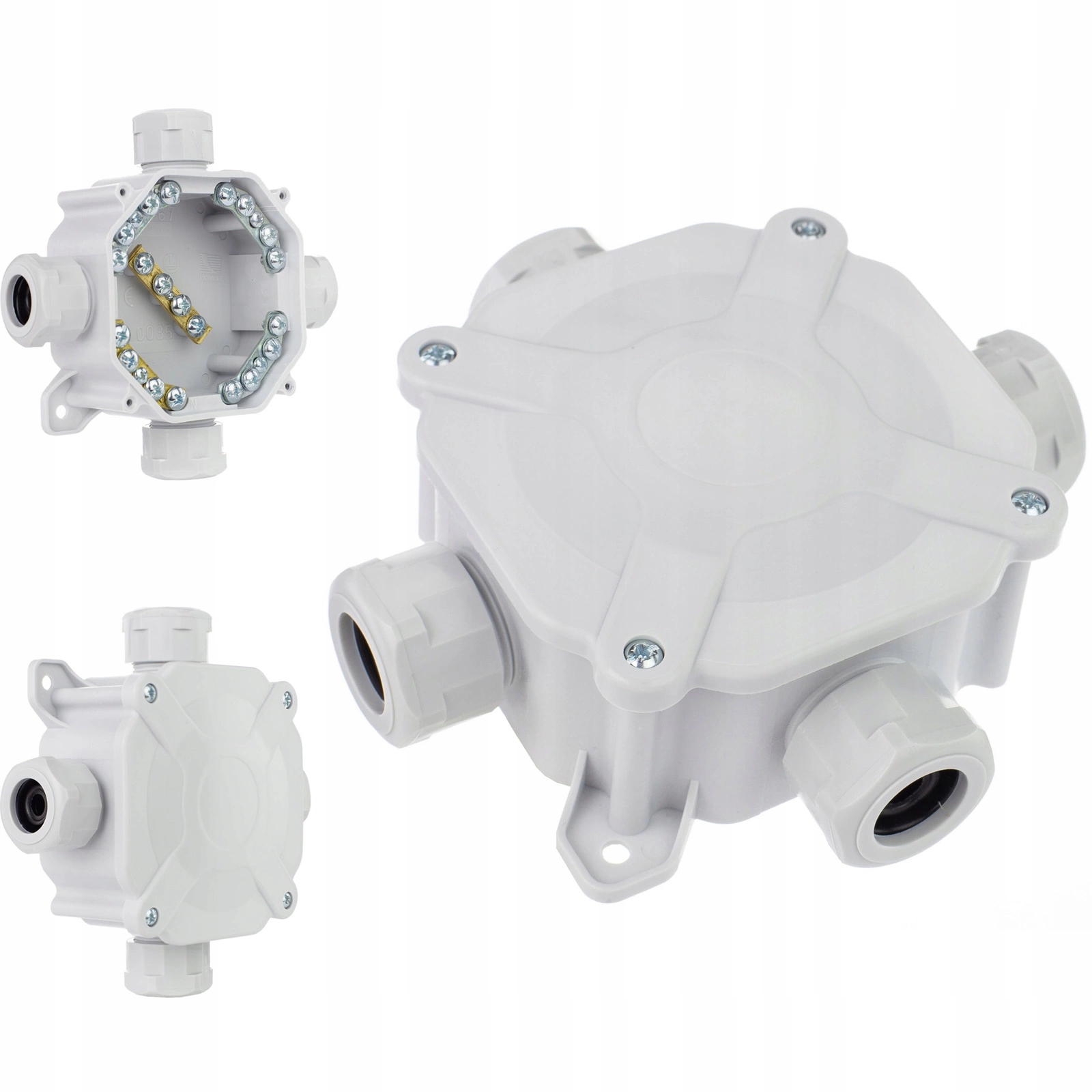 Hermetická instalační krabice pro povrchovou montáž PG16 75x75x33mm Splitter s tlumivkami Šedá PAWBOL