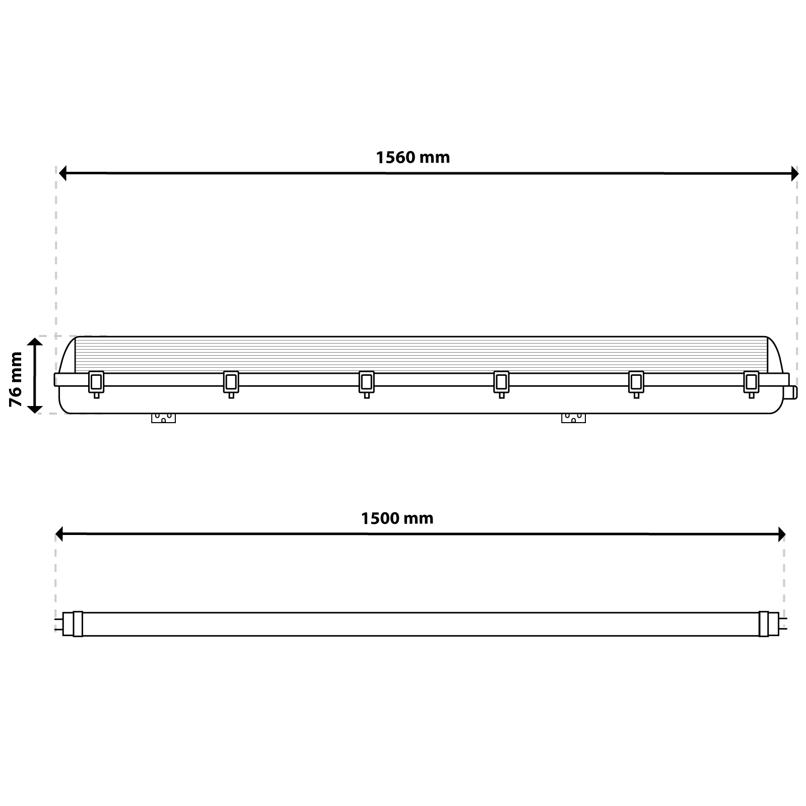 Hermetické prachotěsné svítidlo 150cm 2xT8 G13 IP65 + LED zářivky 25W 4000K Lumiled