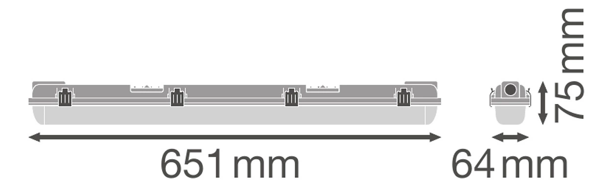 Hermetické svítidlo DAMP PROOF 600 od LEDVANCE je moderní verzí svítidla klasického vzhledu, do kterého můžeme namontovat zářivku s paticí T8 nebo G13 o rozměru 60 cm. Toto svítidlo je vyrobeno z těch nejlepších materiálů, díky kterým dosahujeme nejvyšší kvality a odolnosti. Další výhodou DAMP PROOF je vysoký stupeň krytí IP65 , který zajišťuje těsnost a odolnost proti přímému proudu vody nebo vnikání prachu. Prezentované svítidlo LEDVANCE je produkt připravený pro rychlou a jednoduchou instalaci. Rozhodnutím o koupi prezentovaného hermetického svítidla získáváme produkt s nejlepší kvalitou zpracování.