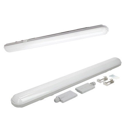 Objevte spolehlivou kvalitu a výjimečný výkon našeho 20W lineárního hermetického svítidla LED. Model Negro od společnosti Kobi kombinuje moderní design s technickými parametry přizpůsobenými vašim potřebám. Se světelným tokem 2 400 lumenů a účinností 120 lm/W poskytuje vynikající osvětlení bez ohledu na podmínky. Neutrální barva světla(4000 K) vytváří příjemnou a uvolňující atmosféru, ideální pro venkovní i vnitřní použití.