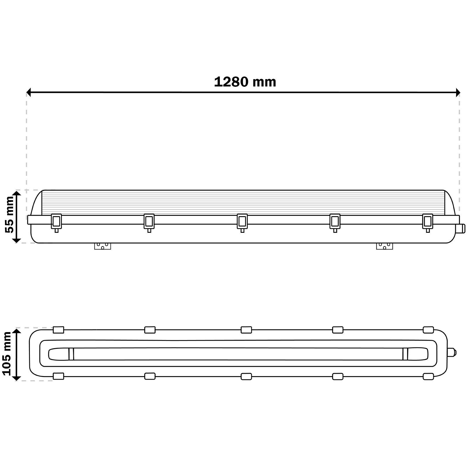 Hermetické svítidlo T8 LED 2x120 cm je univerzálním a odolným řešením pro osvětlení prostor vyžadujících zvýšenou odolnost. Díky těsnosti IP65 chrání vnitřní prostor před prachem a vlhkostí, takže je ideální pro garáže, sklepy, myčky aut, kotelny a výrobní haly. Konstrukce umožňuje rychlou instalaci na strop nebo na stěnu a možnost použití libovolné zářivky LED T8 o průměru 120 cm umožňuje nastavit barvu a světelný výkon podle vašich potřeb. Je to ekonomická a spolehlivá volba pro každého, kdo si zakládá na praktickém osvětlení.