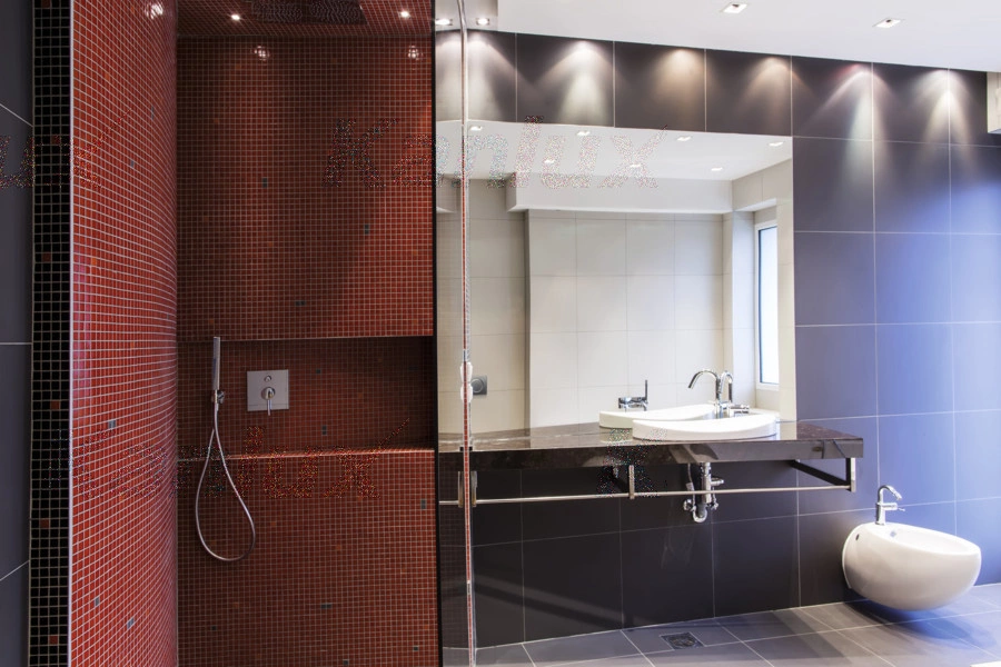 - Bezpečné použití v koupelnách díky krytí IP65, odolné proti vlhkosti a prachu.