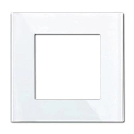 Skleněný rám na zásuvku je návrh vytvořený pro nejmodernější, moderní interiéry. Výrobek čtvercového tvaru má univerzální bílou barvu.