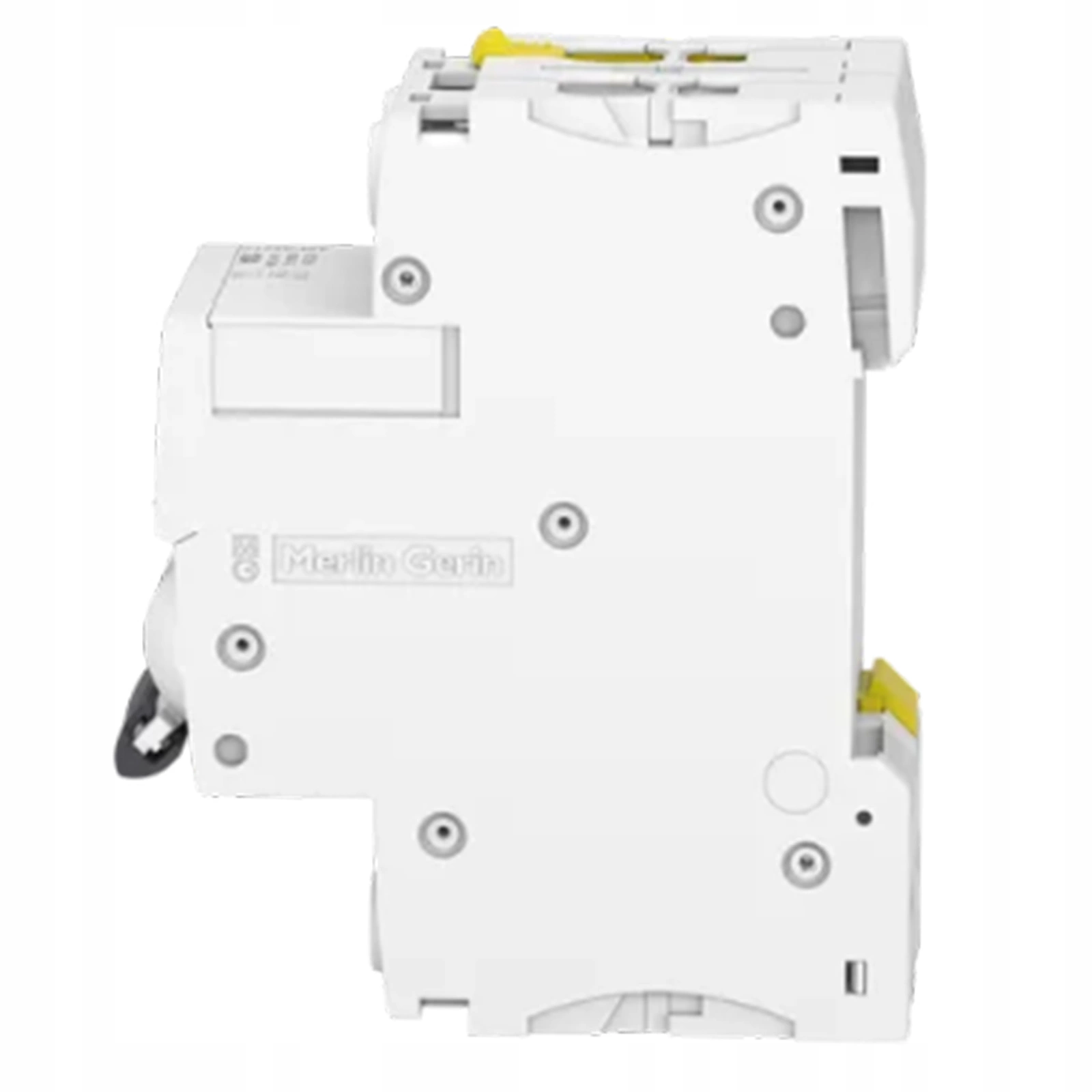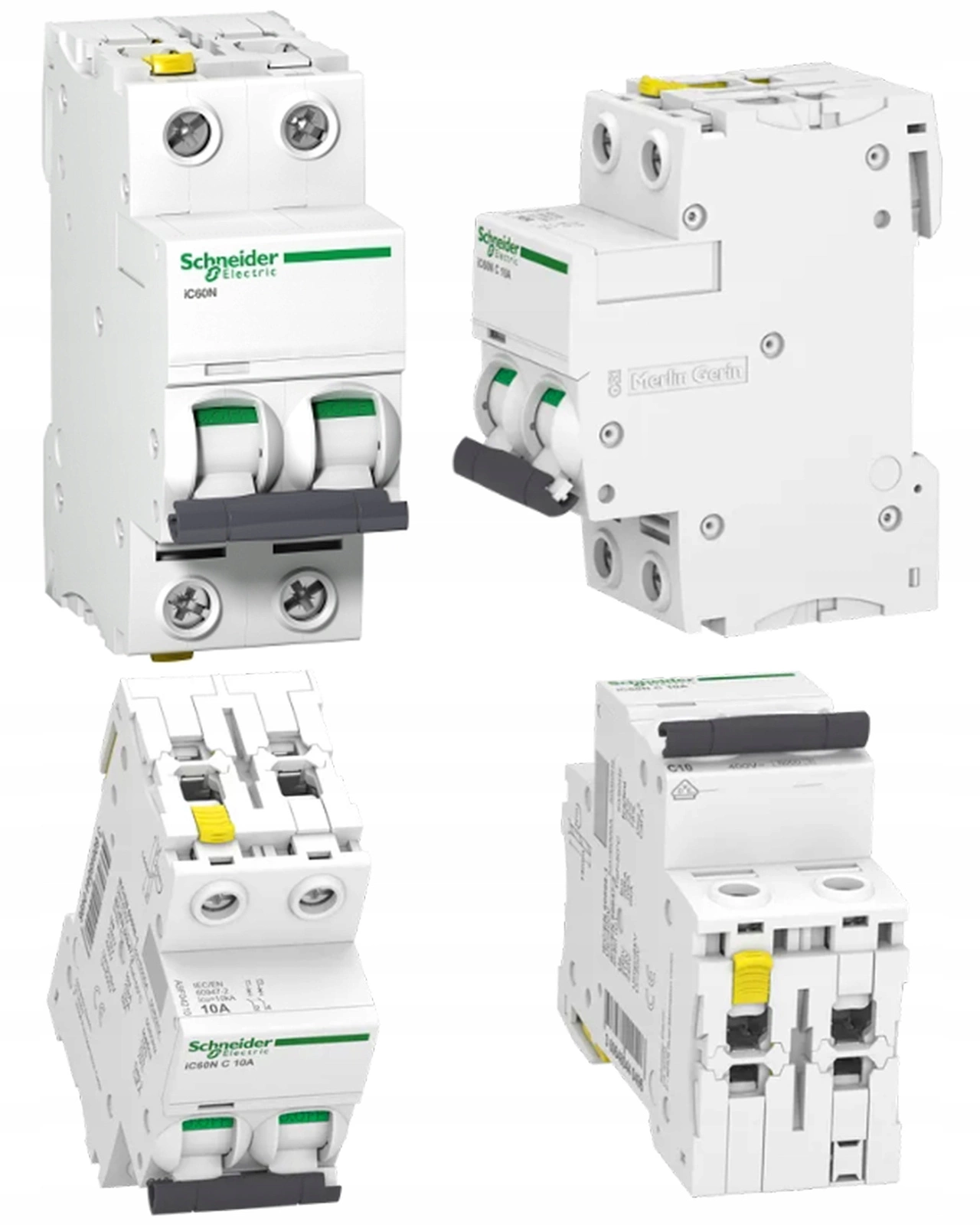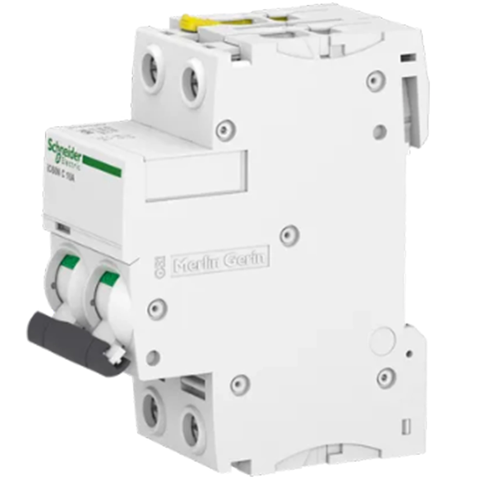 Jistič řady iC60N , číslo A9F04210 , iC60N-C10-2 , 2pólový (bipolární), charakteristika 10A, C, zkratová odolnost 6kA, poskytuje ochranu proti zkratu a přetížení. Možnost přímého propojení dvou kabelů s různými průřezy. Optický Visi-Trip indikátor elektrického vypnutí, bílý a červený.