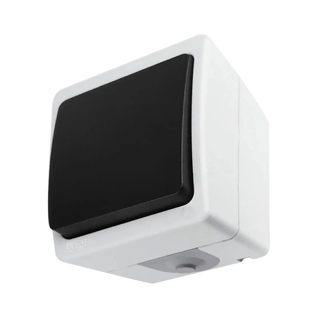 Jednopólový spínač se zaoblenými hranami, černobílý, pro povrchovou montáž . Prezentovaný vypínač slouží k zapínání a vypínání obvodu, ke kterému je elektrické zařízení připojeno. Konektor je vyroben z vysoce kvalitního termoplastu . Je malý, což znamená, že se vejde i na úzké úseky stěn. Velmi dobře padnoucí tlačítka a prvky pouzdra zajišťují bezpečné používání po mnoho let.