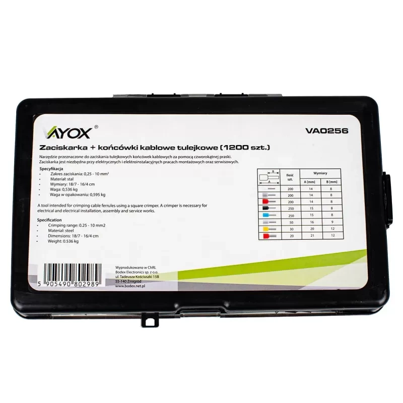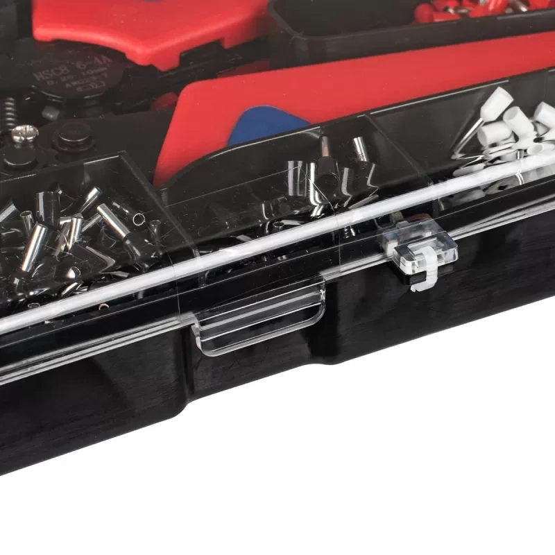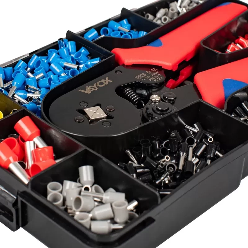 Kompletní sada krimpovacího nástroje VA0256 s 1200 kabelovými objímkami, které jsou součástí dodávky, je vše, co potřebujete k efektivnímu zahájení práce. Nemusíte ztrácet čas hledáním dalšího příslušenství - být plně připraven ihned po otevření balení je obrovskou výhodou při každodenní práci montéra nebo instalatéra. Široký výběr objímek umožňuje přesné přizpůsobení kabelům různých průřezů - v dílně i v terénu.