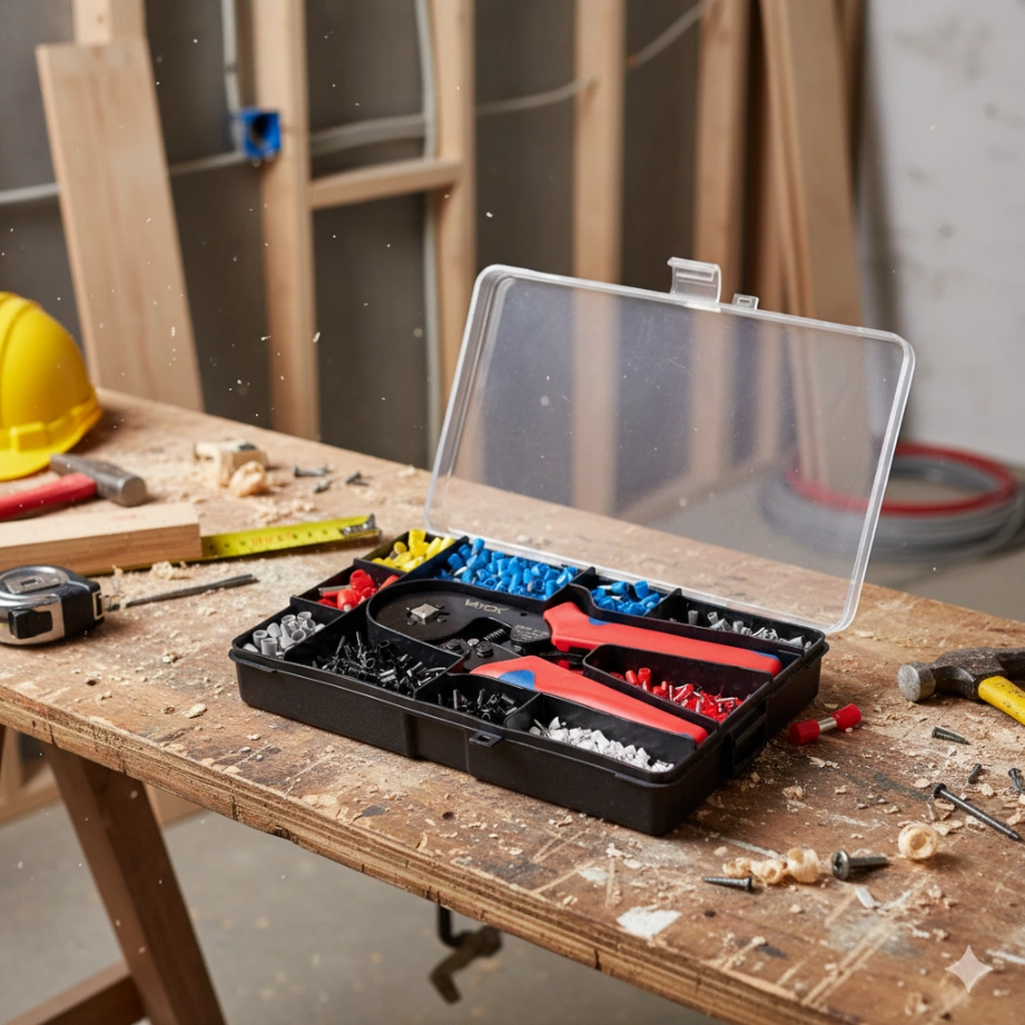 Krimpovací nástroj VA0256 je spolehlivý nástroj pro přesné krimpování dutinek na drátech o průřezu od 0,25 do 10 mm². Robustní kovová konstrukce a ergonomická rukojeť zajišťují pohodlí a odolnost i při intenzivní práci. Celá sada se dodává v elegantním přepravním boxu, který obsahuje jak krimpovací kleště, tak až 1 200 dutinek různých velikostí. Díky tomu máte vše vždy po ruce - žádný nepořádek, žádné hledání - což výrazně přispívá k ergonomii, pohodlí a efektivitě.