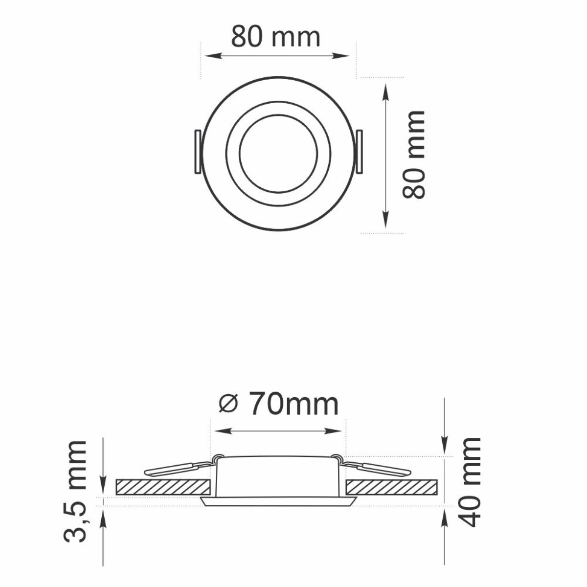 Vestavné svítidlo ze série BORAS od renomované a uznávané firmy GOLDLUX (Polux) s paticí MR16 . Svítidlo je vyrobeno z vysoce kvalitní hliníkové slitiny a zaručuje vysokou těsnost - stupeň krytí IP44 , což umožňuje instalaci svítidla v místnostech s vysokou vlhkostí, jako je koupelna nebo kuchyně.
