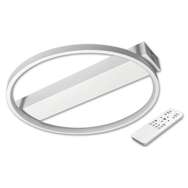 Moderní LED lustr. Je osazena 250 SMD 2835 LED, které mají možnost stmívání a změny barvy světla. K regulaci provozu zařízení slouží vyhrazený dálkový ovladač (součástí balení) , který nám umožňuje snížit nebo zvýšit intenzitu SVĚTLA nebo změnit jeho barvu z teplé na neutrální nebo studenou. Dálkové ovládání funguje rádiem, což znamená, že pro změnu nastavení nemusíme mířit na konkrétní bod.