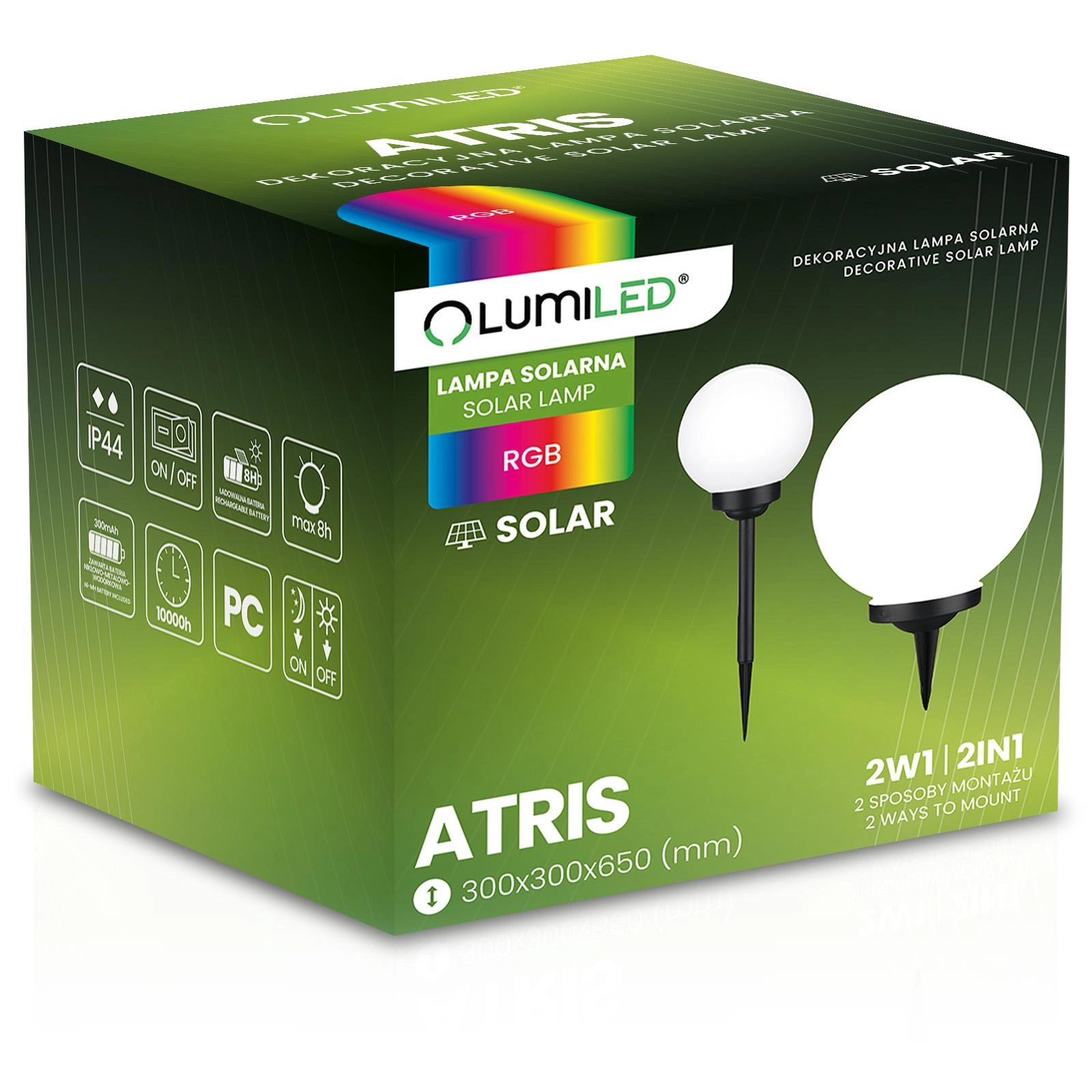 Solární zemní lampa ATRIS o průměru 30 cm od renomované značky LUMILED vnese do vaší zahrady eleganci a zvláštní náladu díky pestrobarevnému osvětlení. Štíhlé černé hroty zajišťují stabilitu a zároveň umocňují moderní a stylový vzhled lampy. Kulaté mléčné stínidlo vyzařuje měkké rozptýlené světlo různých barev a vytváří tak působivou hru barev. Její stylový design je ideální pro osvětlení cest, zahrad a teras a spojuje funkčnost s ekologií.