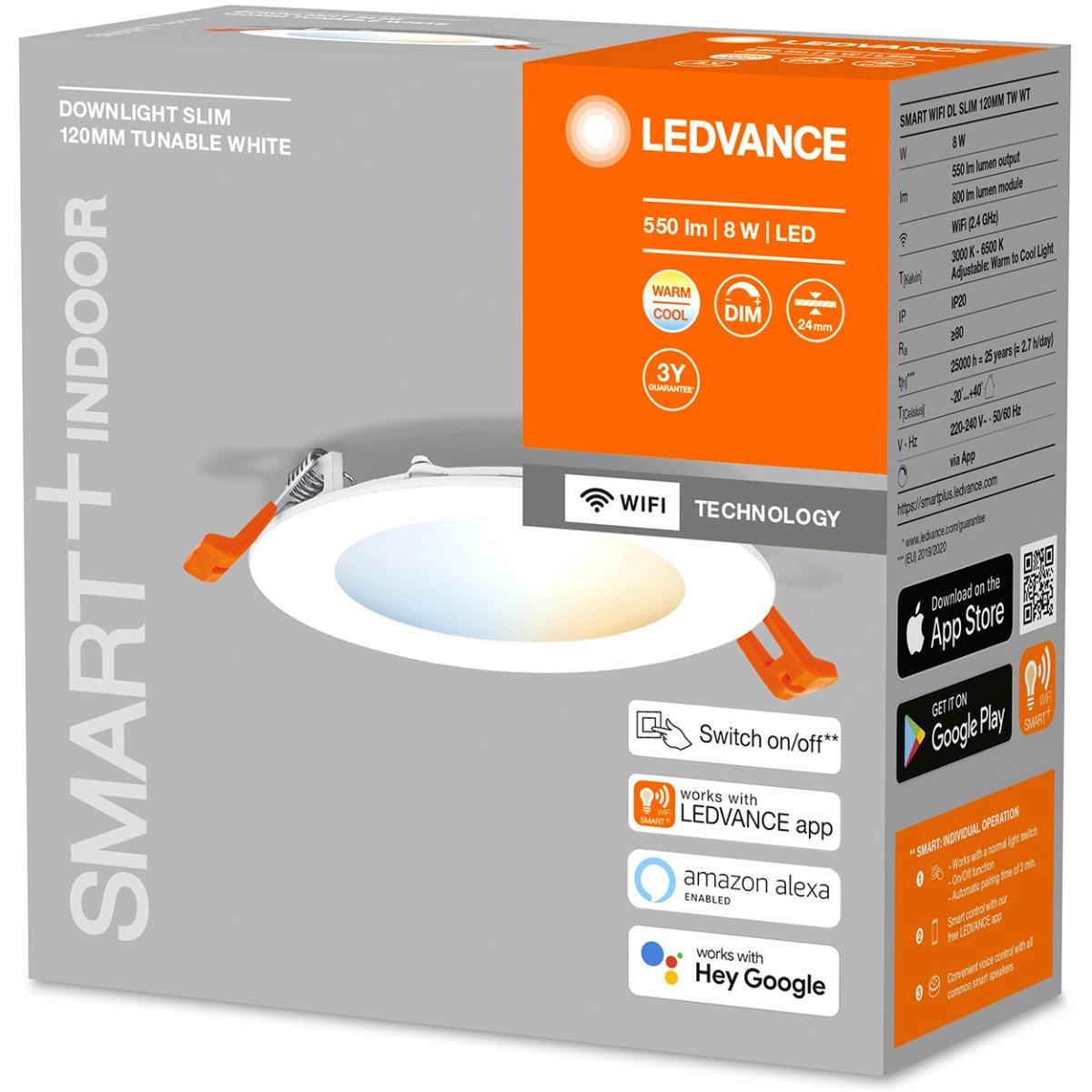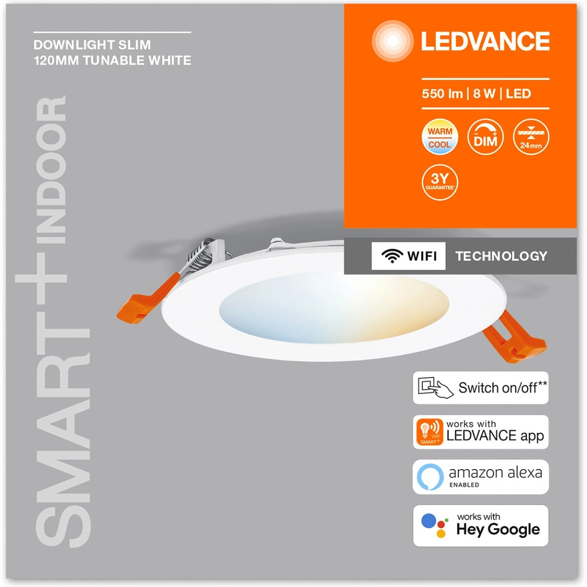 Tento model o průměru 12 cm byl navržen pro snadnou vestavbu. Je vybaven krytím IP20 a IK03 a je ideální pro vnitřní použití. Výrobek podporuje připojení WiFi, což umožňuje jeho dálkové ovládání prostřednictvím chytrého telefonu. Díky úhlu rozložení světla 110° svítidlo účinně osvětlí velké plochy. Je stmívatelné a má vysokou životnost 25 000 hodin.