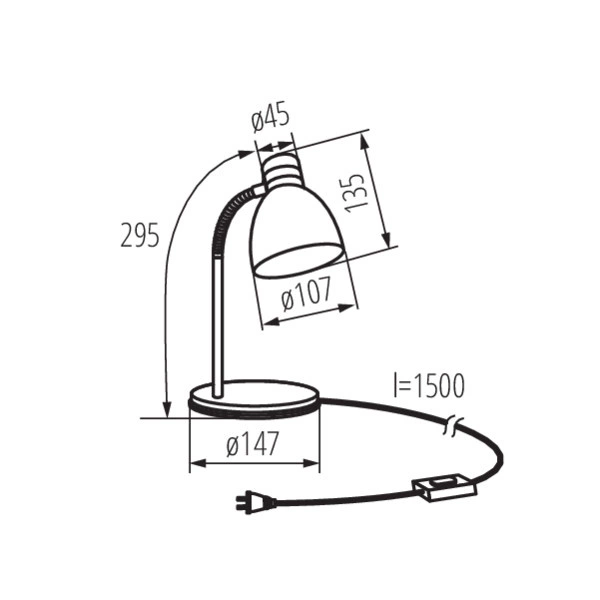 Bezpečné a pohodlné používání zajišťuje vestavěný vypínač a díky jednoduchému připojení k elektrické síti díky 220-240 V je lampa připravena k použití v kanceláři, ložnici nebo dětském pokoji. Účinná a energeticky úsporná lampa vybavená paticí E14 pracuje s vyměnitelným světelným zdrojem o výkonu až 10 W, což z ní činí univerzální volbu pro nejrůznější použití v interiéru.