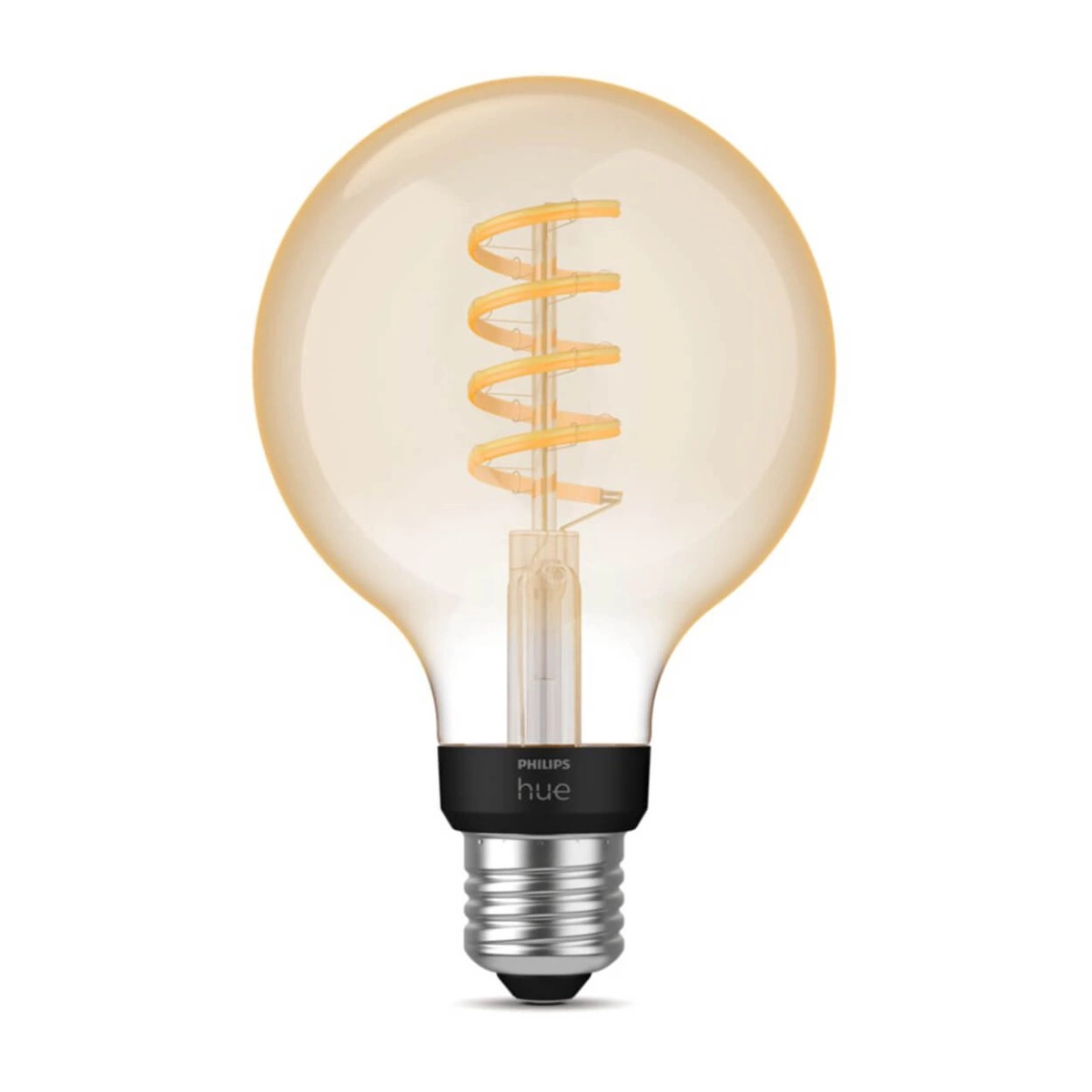 Žárovka HUE LED FILAMENT uznávaný a respektovaný v oboru osvětlení Philips. Žárovka ve tvaru Globe G95, podle vzoru nadčasové Edisonovy žárovky s charakteristickým vláknem uvnitř a průhlednou koulí. Žárovka se závitem E27 a výkon 7W je ekvivalentem klasické 40W žárovky, výrobku s velmi účinným světelným tokem - 550 lm, vyzařuje teplé příjemné a relaxační světlo z nastavitelný v rozsahu barevných teplot od 2200K do 6500K. Kromě kontroly světla v celé teplotní stupnici má žárovka také funkci okamžité stmívání.