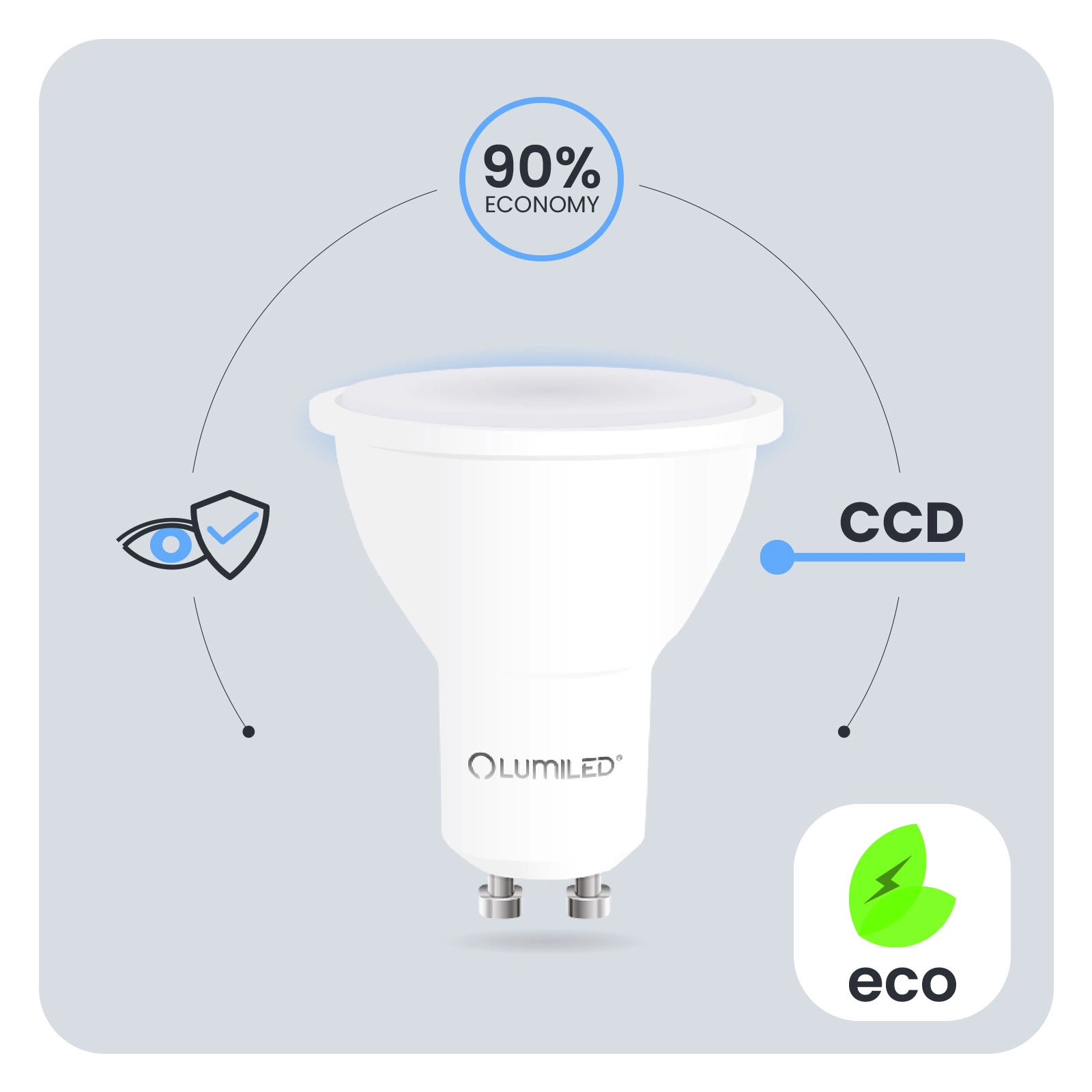 Díky měniči CCD použitému v žárovce LED je žárovka odolná vůči poklesům a špičkám síťového napětí. Světlo nebliká ani se netřese. Díky měniči CCD je žárovka dlouhodobě bezporuchová. Žárovky LUMILED jsou navrženy s ohledem na uživatele. Špatná kvalita osvětlení může vést k únavě očí, proto mají naše žárovky technický vývoj Eye Safe, který zajišťuje pohodlné a šetrné osvětlení pro vaše oči v jakékoli místnosti.