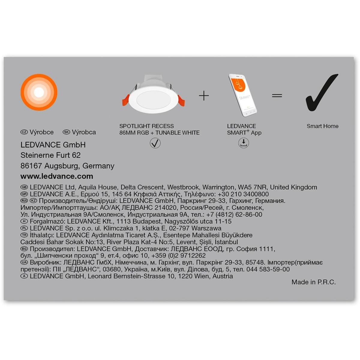 - Ovládání pomocí aplikace LEDVANCE SMART+ (s operačním systémem Android alespoň 8.0 nebo iOS 14.0).