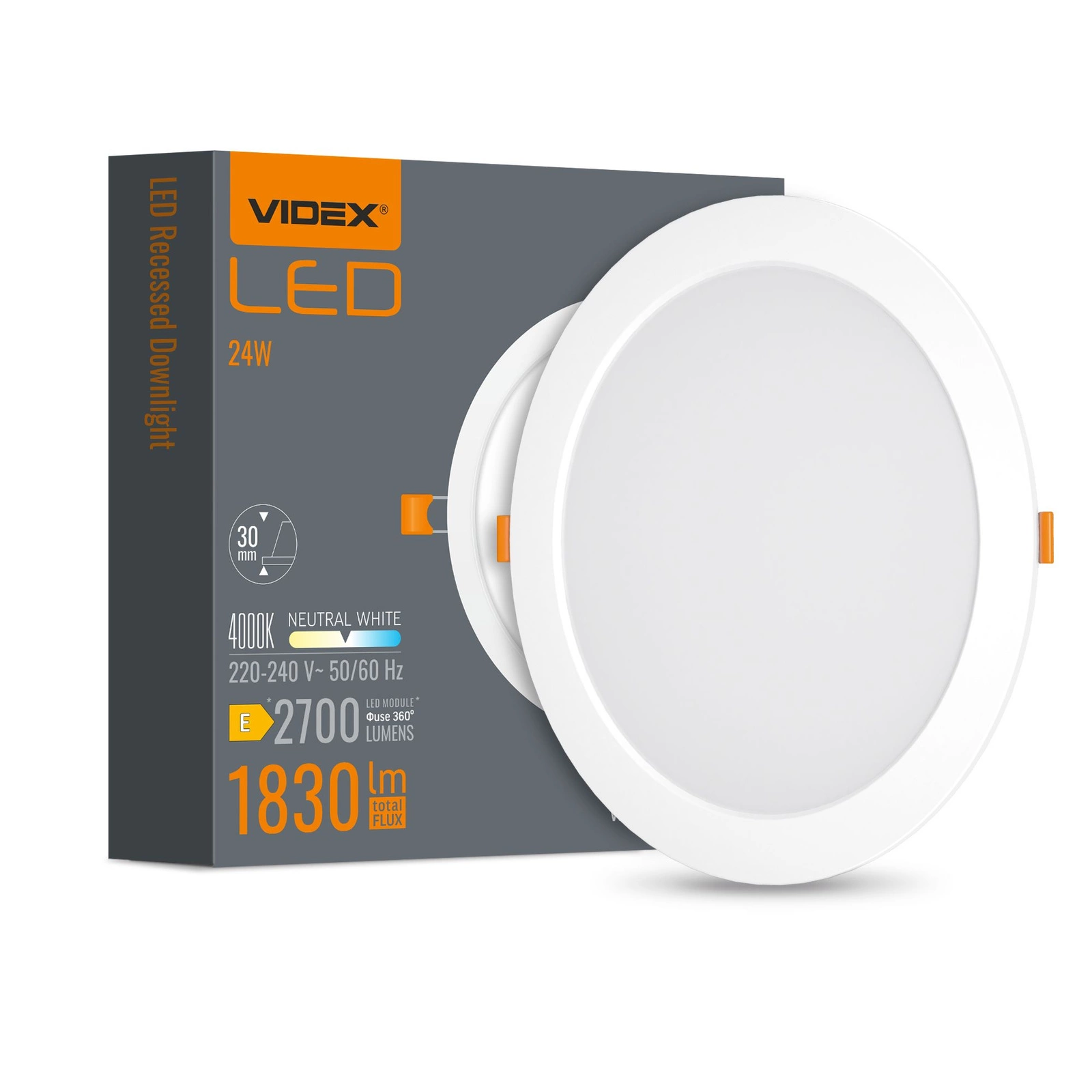 Panelové svítidlo Videx LED pro zapuštěnou montáž nabízí výkon 24 W a světelný tok 2700 lm. Je vybaveno světlem s barevnou teplotou 4000 K, které vyzařuje neutrální bílé světlo, ideální pro každodenní použití. Je napájeno napětím 220-240 V a pracuje při frekvenci 50-60 Hz. Účiník je 0,7, což zajišťuje stabilní a účinné osvětlení.