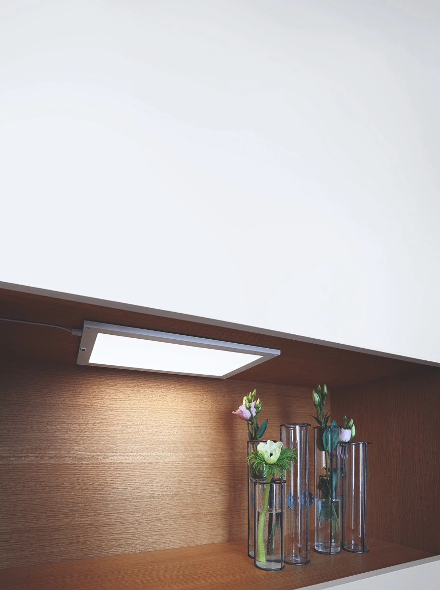 8W svítidlo LED Panel Smart pod skříňku je stylové a funkční svítidlo pod skříňku v bílé barvě, které dokonale zapadne do každé moderní kuchyně nebo koupelny. Díky technologii SMART+ WiFi umožňuje snadno nastavit barvu světla 530 lm a teplotu barev (CCT) a vytvořit tak dokonalou atmosféru v kteroukoli denní dobu. Možnost stmívání dále rozšiřuje možnosti uspořádání osvětlení.