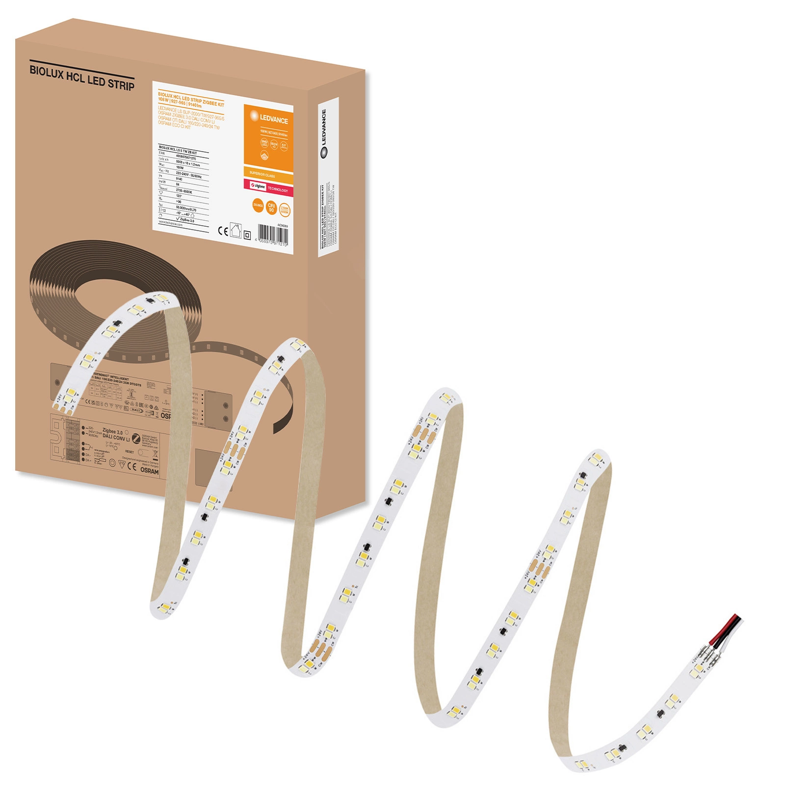 LED pásek řady Biolux HCL poskytuje úhel rozložení světla 120°, což podporuje rovnoměrné osvětlení prostoru. Je určen pro povrchovou montáž a je napájen ze sítě při napětí 220-240 V. Životnost až 50 000 hodin a schopnost provést 15 000 vypínacích cyklů z něj činí energeticky úsporné a dlouhodobé řešení pro každý interiér. LED pásek splňuje normy CE, a proto je pro uživatele také bezpečnou volbou.