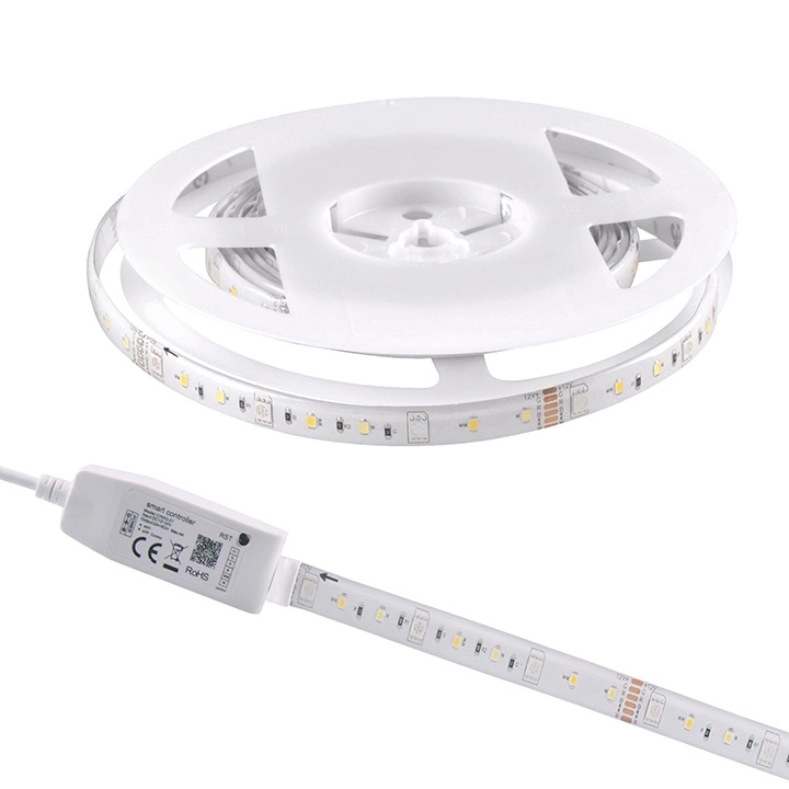 LED pásek Wi-Fi SMART z plastové z 8W a světelný tok 680 lm prostřednictvím aplikace TUYA smart na našem chytrém telefonu vzdáleně ovládat připojené zařízení. Aplikaci si můžete stáhnout na platformě Android v obchodě Google Play a na platformě Apple iOS v App Store. Výrobek má vestavěný modul bezdrátového připojení, který pracuje ve standardním pásmu Wi-Fi 2,4 GHz. Barva světla pásku LED je teplá přes neutrální až po studenou. Lišta má také RGB, které nám kromě základních barev poskytuje také MULTIKOLOR (3000K až 6000K + RGB). LED pásek má stupeň ochrany IP65 díky čemuž je vodotěsný. Třídy energetické účinnosti jsou: A+, A++, A.